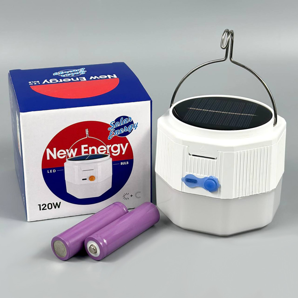 Лампа для кемпінгу New Energy з Solar panel (2 акумулятори 18650) 8,5 см (Гарантія на перевірку 1 міс.)