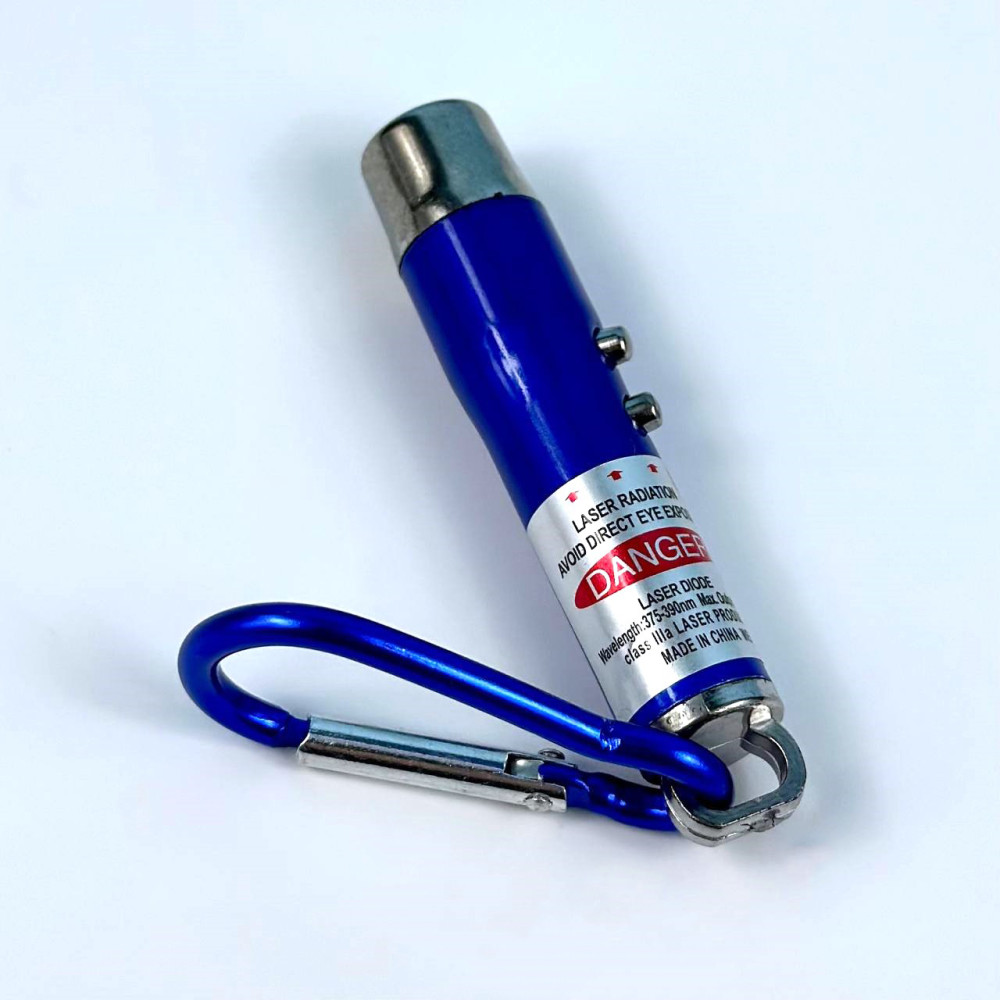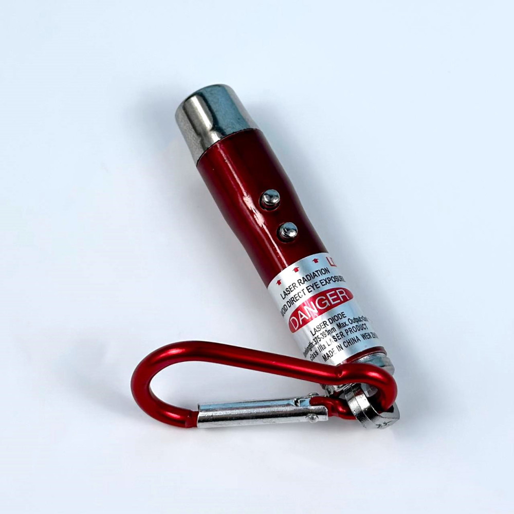 Лазерна указка 9617 (ліхтарик, LED,UV, 3 акумулятори LR44, з карабіном)