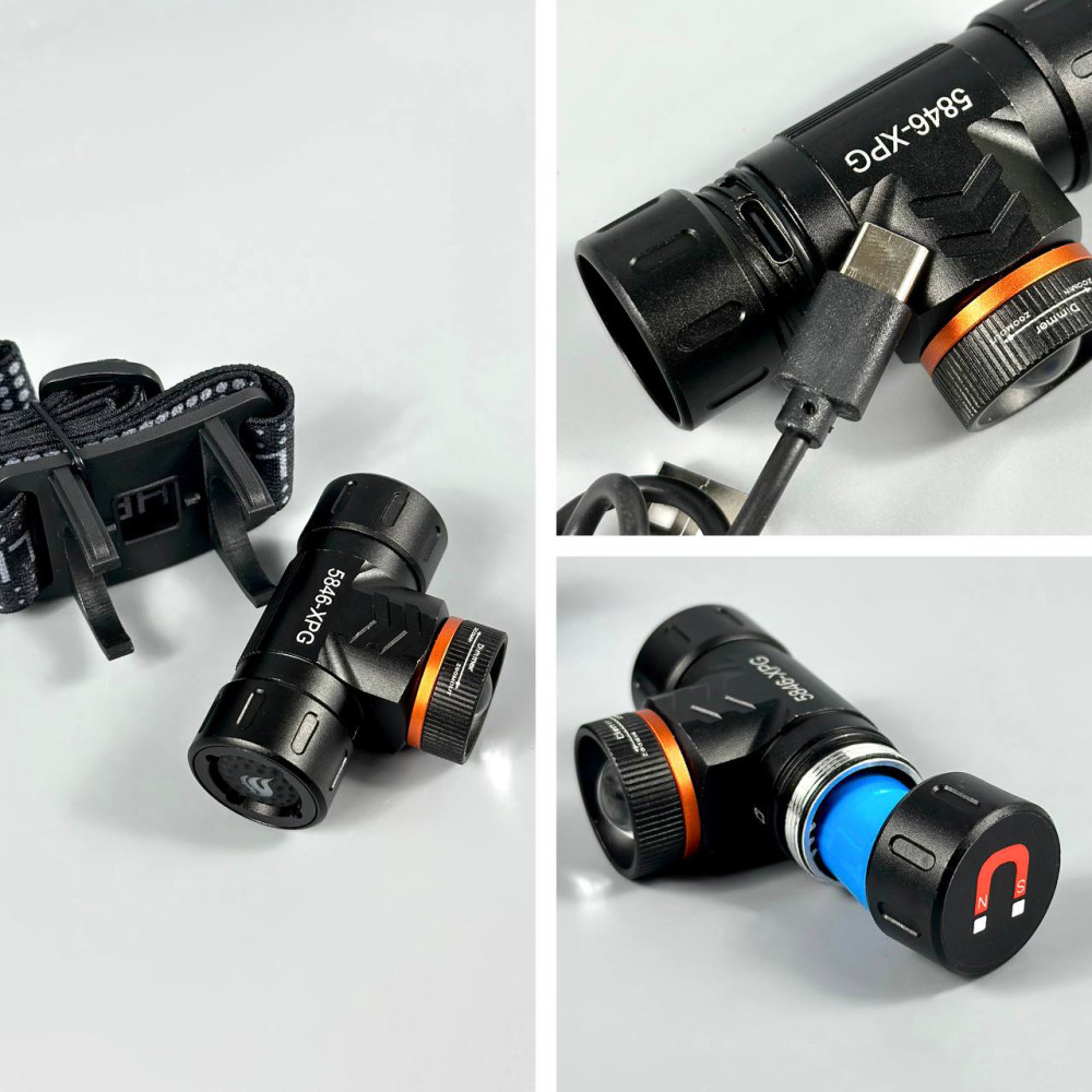 Ліхтар налобний 5846-XPG (1*16340, Magnetic, Type-C) (Гарантія на перевірку 3 міс.)