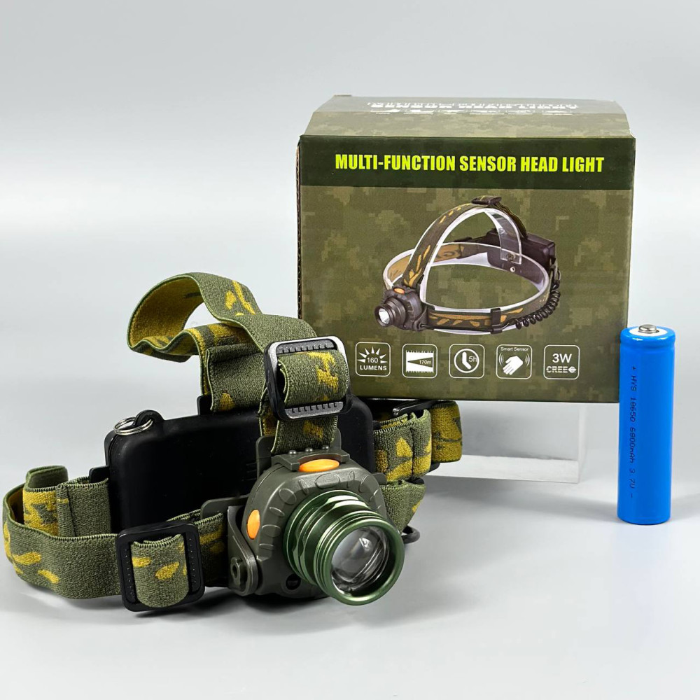 Ліхтар налобний 6616-T6 (Motion Sensor, 1*18650, Zoom, 220, 12V) (Гарантія на перевірку 3 міс.)
