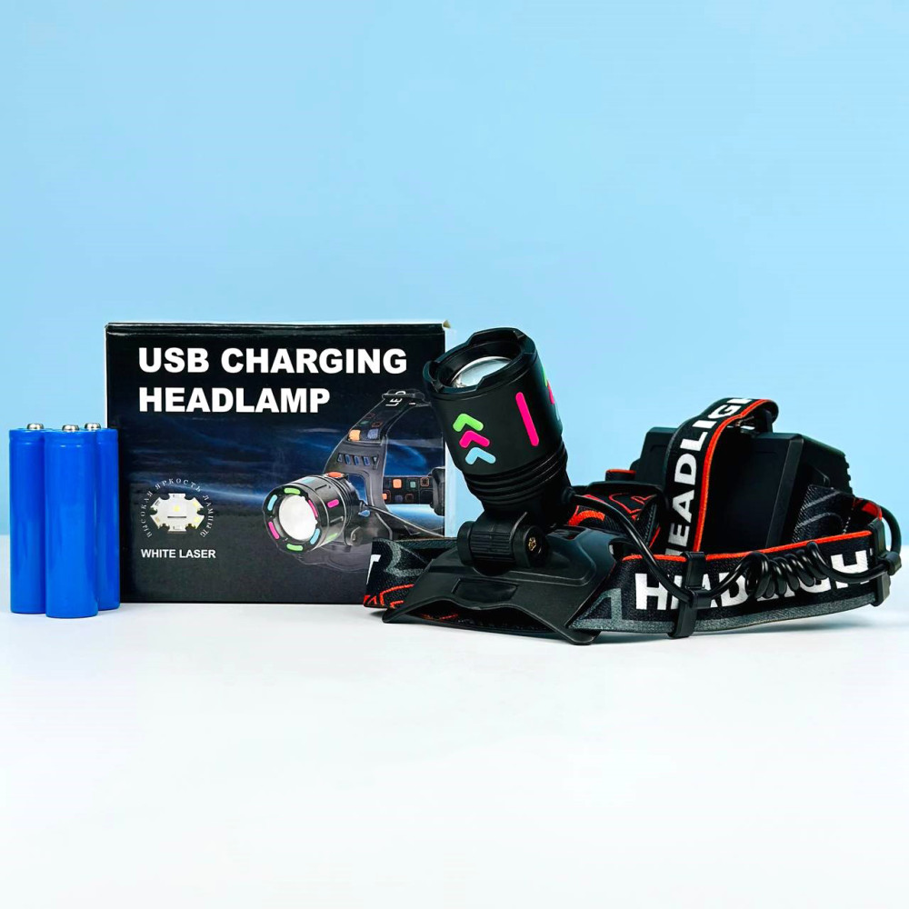 Ліхтар налобний 8096 PM10-TG (COB, 3 акумулятори 18650, Power Bank, Zoom, Type-C) (Гарантія на перевірку 3 міс.)
