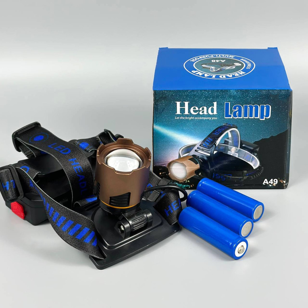 Ліхтар налобний A49-TG (Power Bank, 3*18650, Type-C, Zoom) (Гарантія на перевірку 3 міс.)