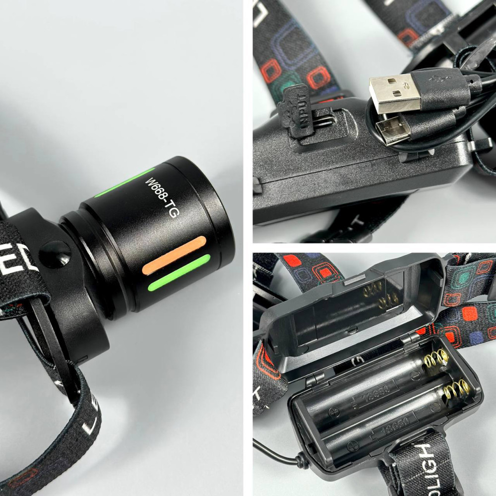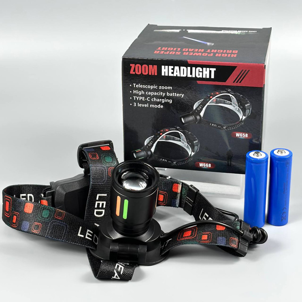 Ліхтар налобний W668-TG (2*18650, Type-C, Zoom) (Гарантія на перевірку 3 міс.)