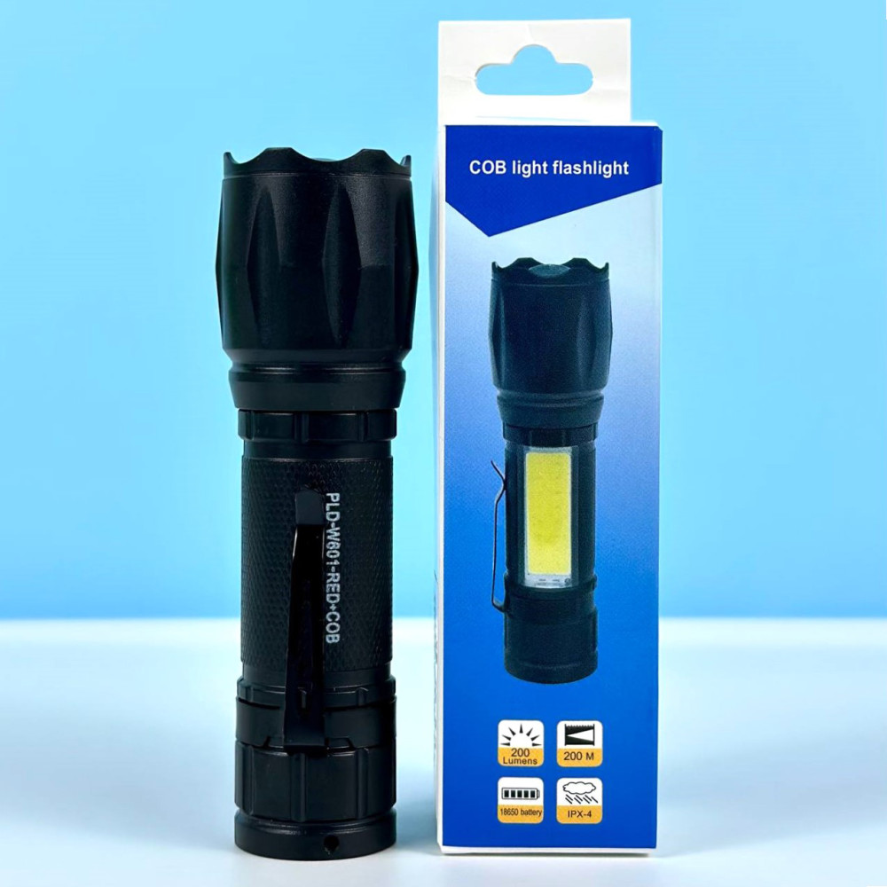 Ліхтар W601-XPE White, Red light (COB, Li-Ion акумулятор, Zoom, Micro) (Гарантія на перевірку 3 міс.)