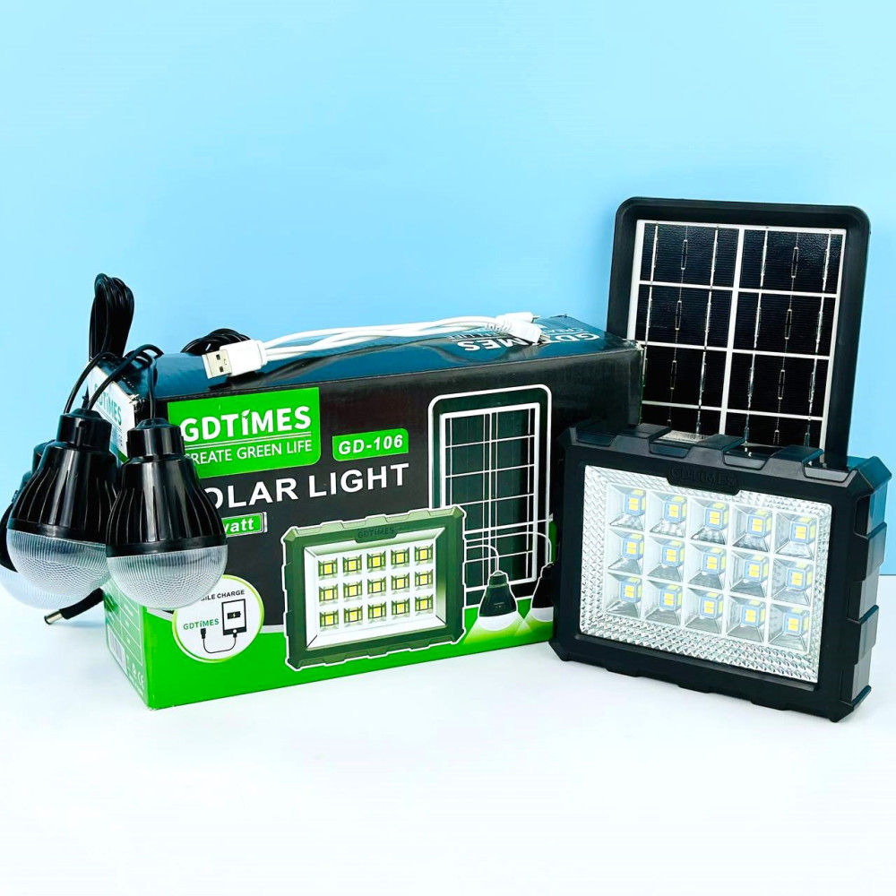Система автономного освітлення та зарядки GD-106 (сонячна панель +ліхтар +3 лампи +power bank) (Гарантія на перевірку 1 міс.)