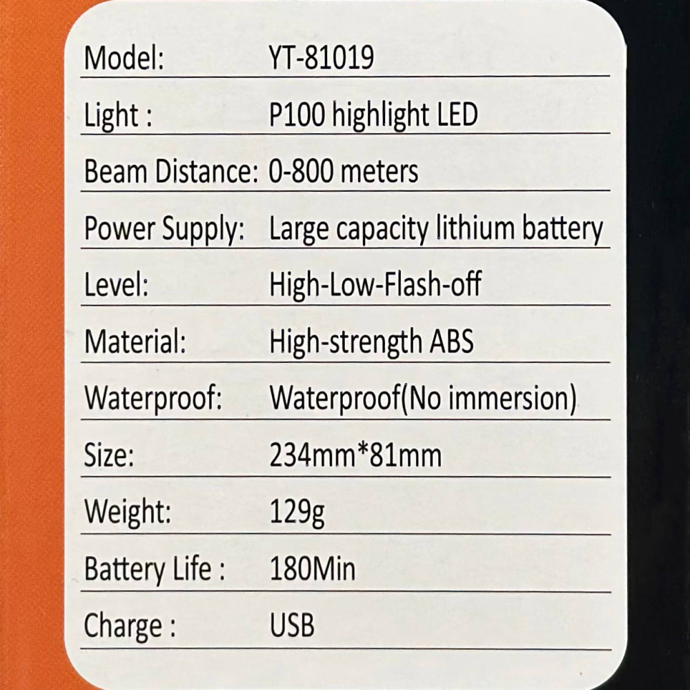 Ліхтар YT-81019 Multifunction Switch (Вбудований акумулятор, індикатор заряду, Micro) (Гарантія на перевірку 3 міс.)