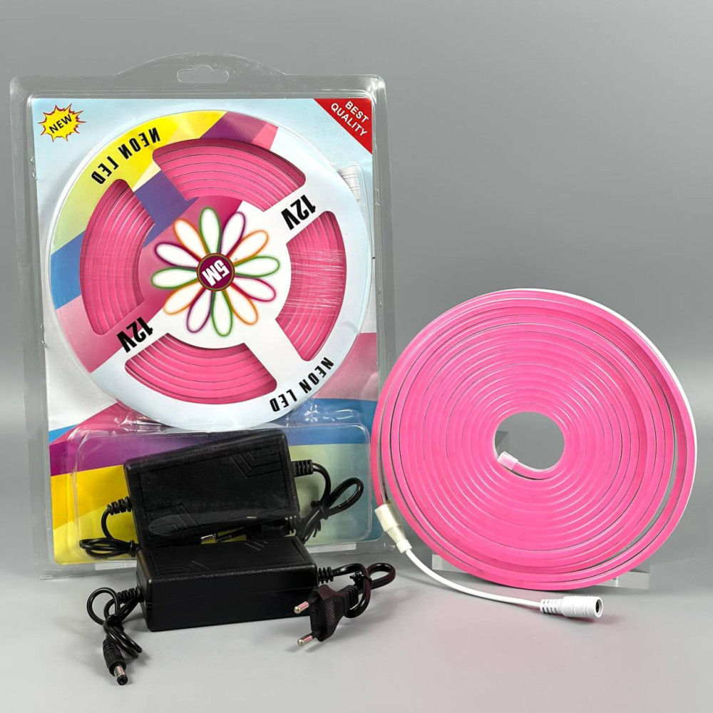 Світлодіодна стрічка (силіконова) LED NEON Pink (5m, 12V-220V)