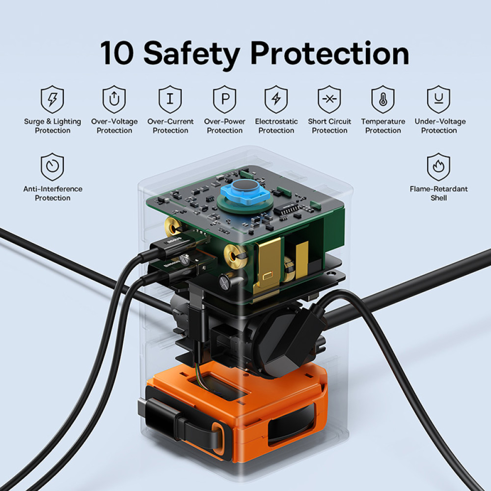 Тип C1 + (Тип C2 + USB2) + USB1: 45 Вт + 15 Вт + 5 Вт.