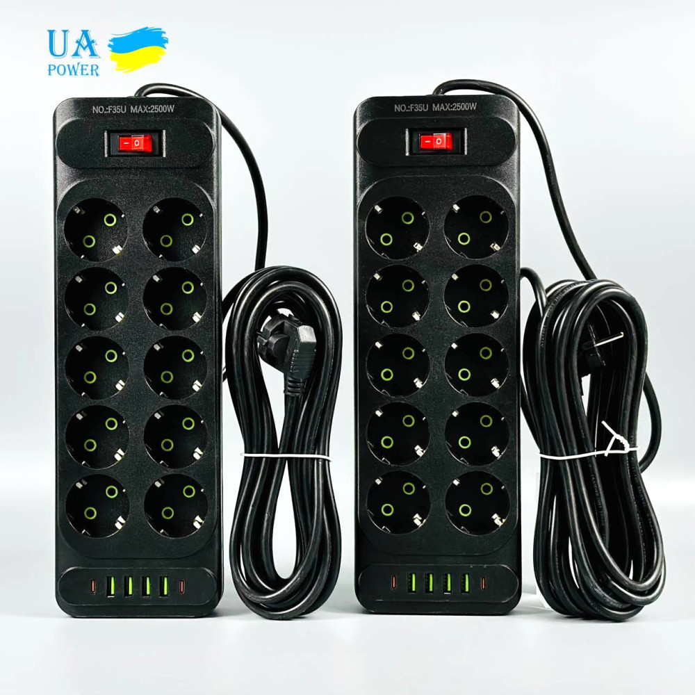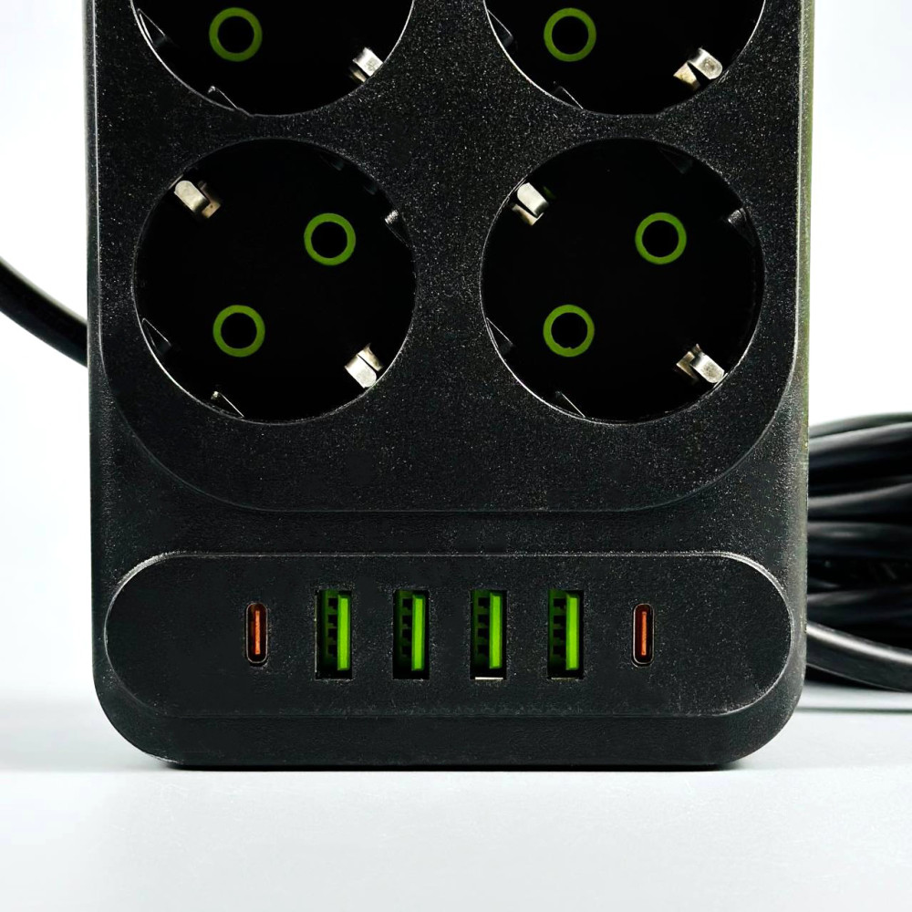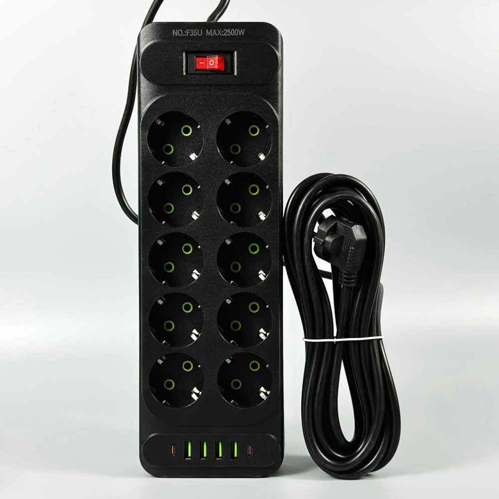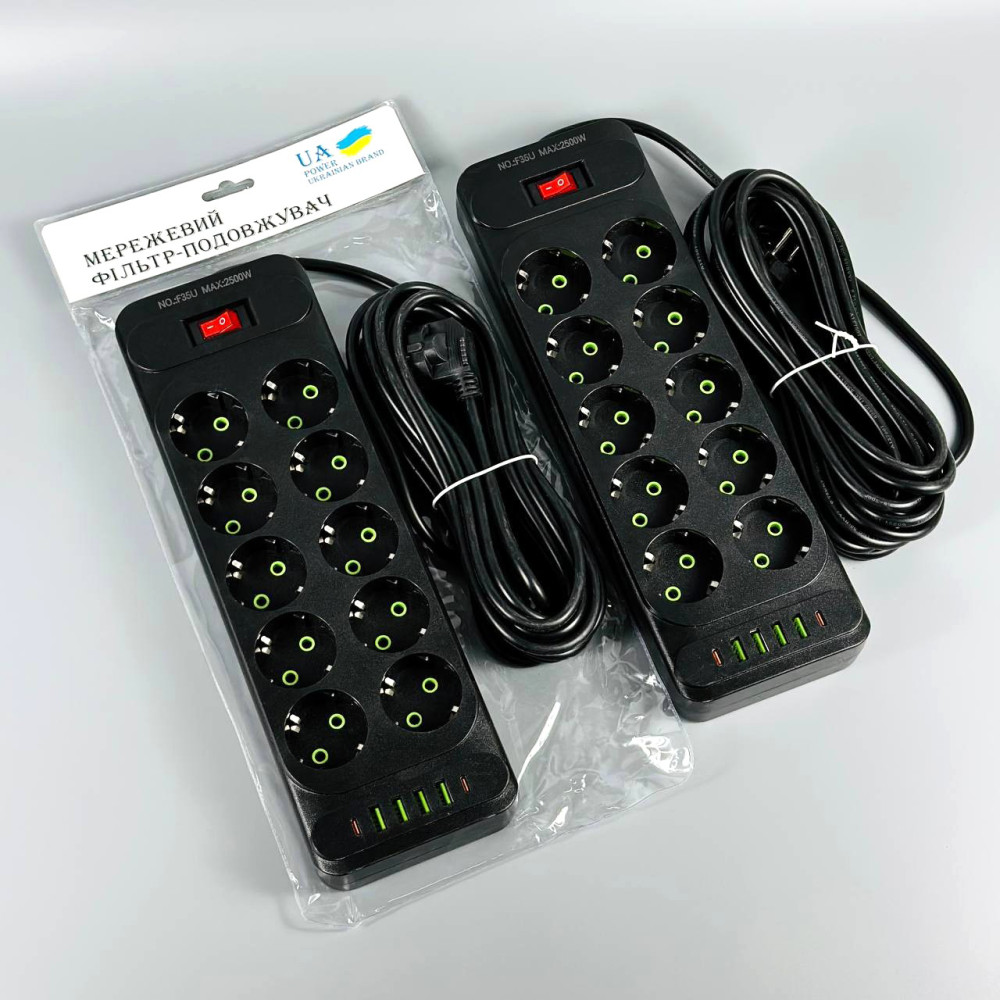 Мережевий подовжувач UA Power F35U 4USB+2Type-C 3.1A 10 розеток 6m (Гарантія на перевірку 1 рік.)