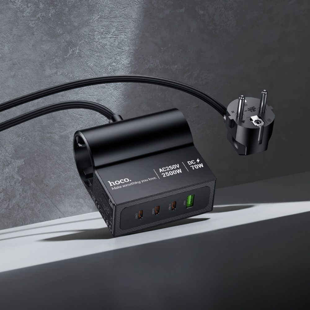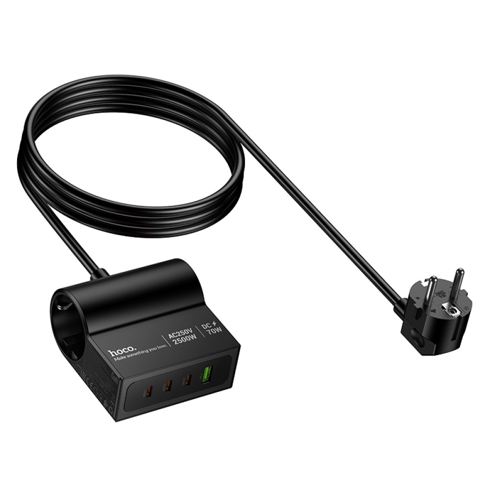 Мережевий подовжувач Hoco AC34 Win 2500W PD70W+QC3.0 2 розетки 1.5m