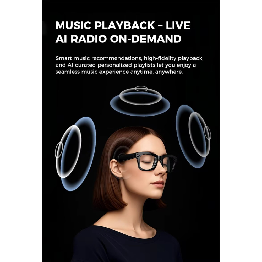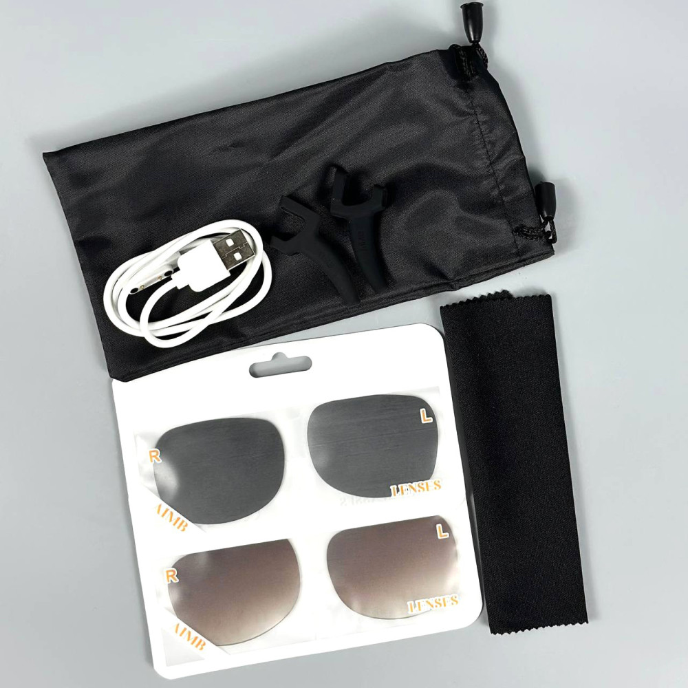 Glasses AIMB-GI - інноваційні розумні окуляри, розроблені для поєднання стилю, комфорту та передових технологій. Цей аксесуар дозволяє залишатися на зв'язку, фіксувати важливі моменти та насолоджуватися якісним звуком, не відволікаючись від повсякденних справ.