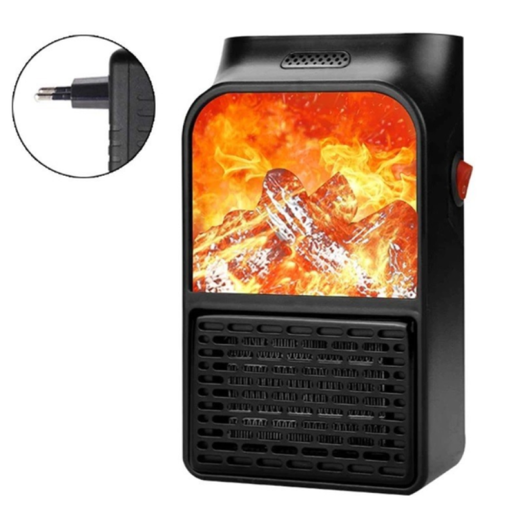 Міні-електрообігрівач у розетку Flame Heater 1000W (з підсвічуванням, LED дисплеєм та пультом керування) (18см) (Гарантія на перевірку 3 міс.)