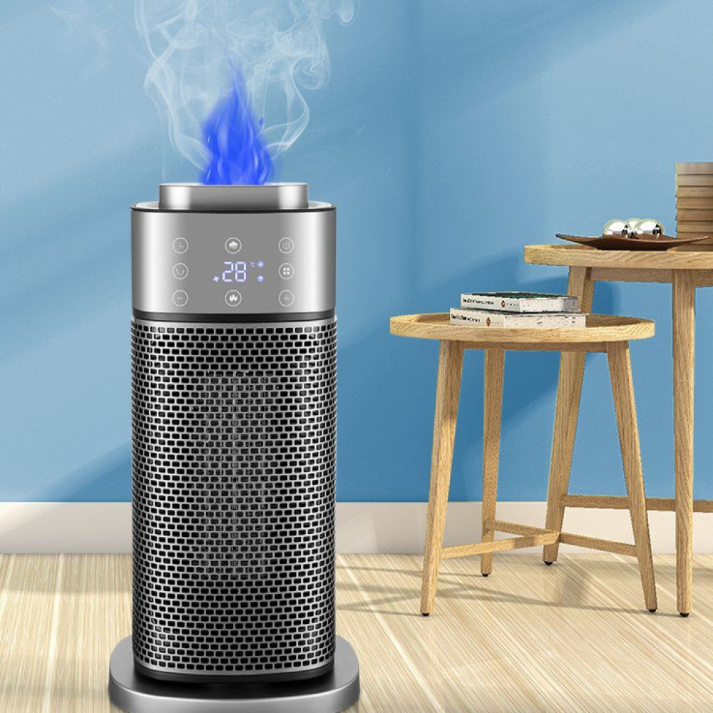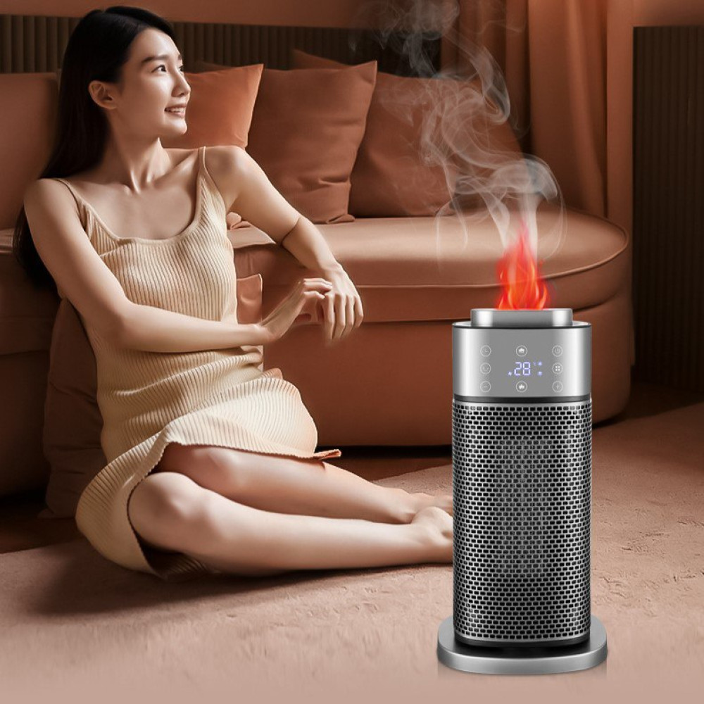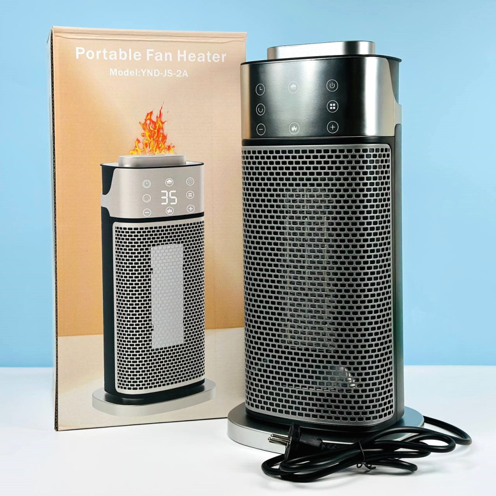 Підлоговий тепловентилятор керамічний YND-JS-2A 3D-полум'я із зволоженням з пультом 2000W (обертається на 180°) (41,0*20,2*16,8) (Гарантія на перевірку 3 міс.)