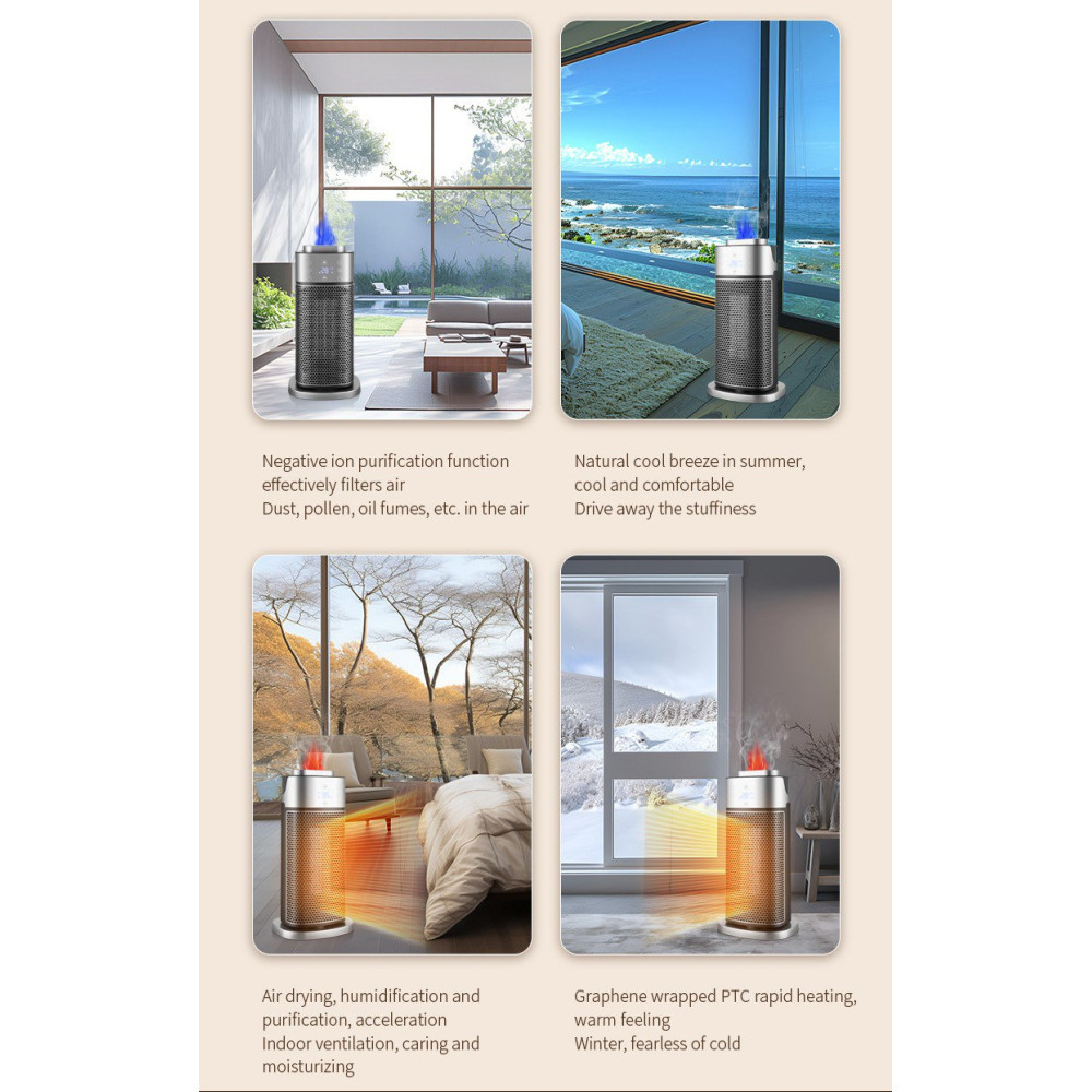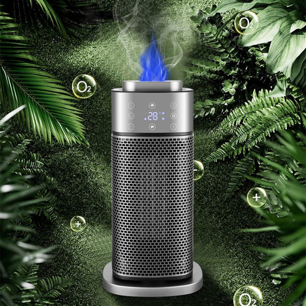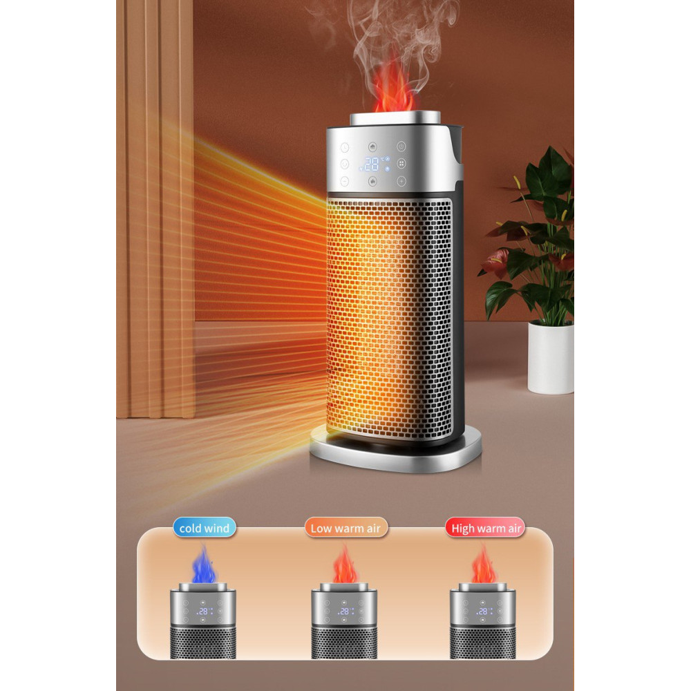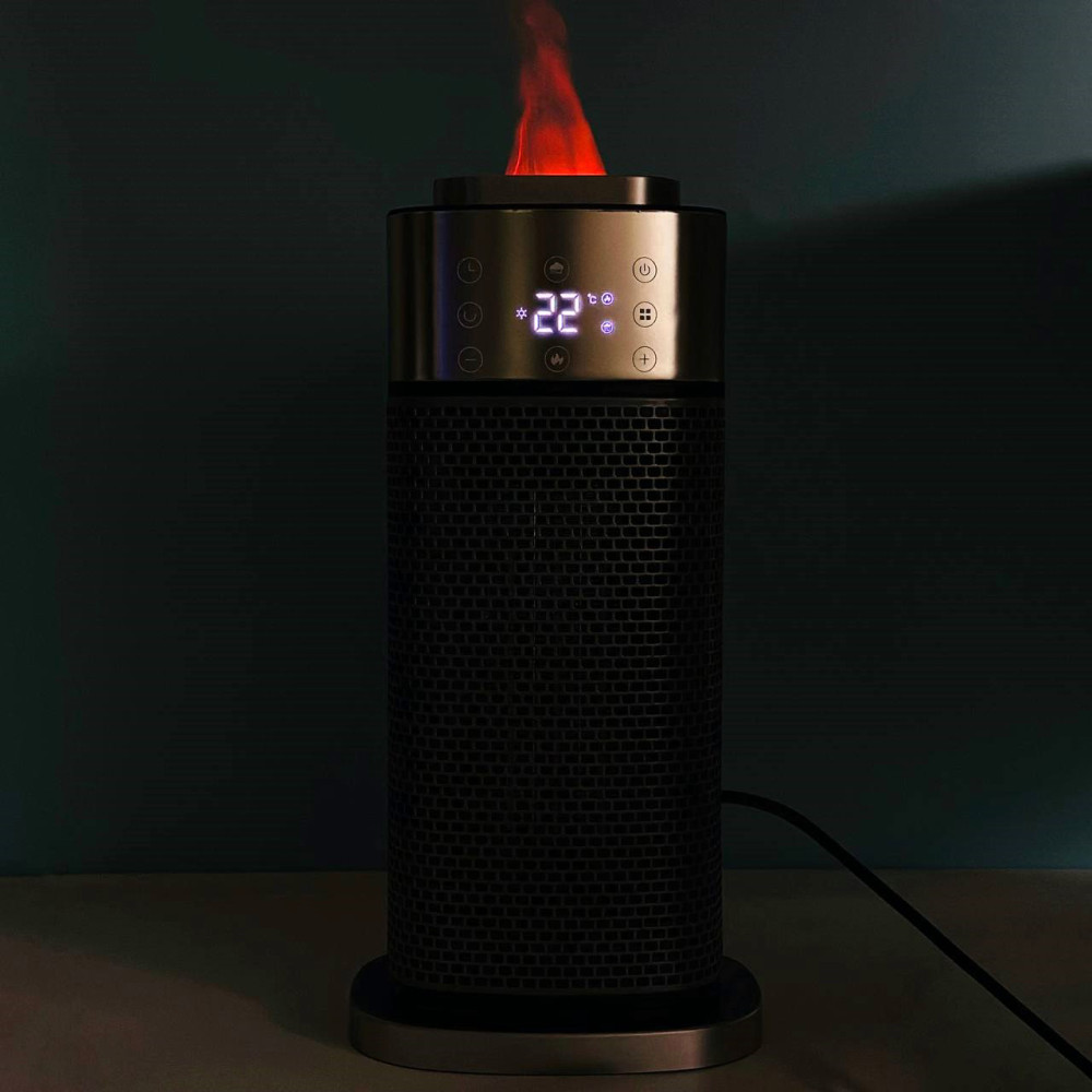 Підлоговий тепловентилятор керамічний YND-JS-2A 3D-полум'я із зволоженням з пультом 2000W (обертається на 180°) (41,0*20,2*16,8) (Гарантія на перевірку 3 міс.)