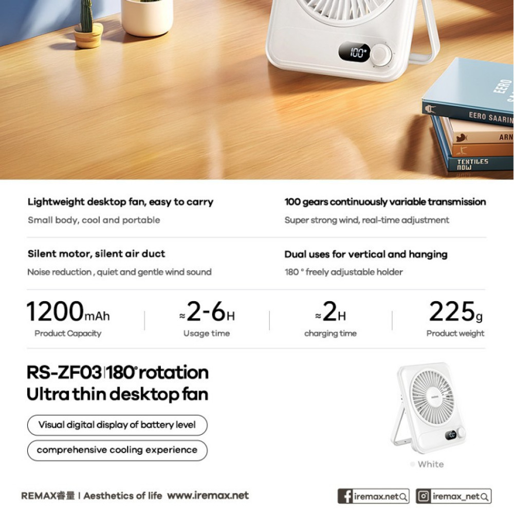 Вентилятор Remax RS-ZF03 настільний (з вбуд. акум.) (Гарантія на перевірку 1 міс.)