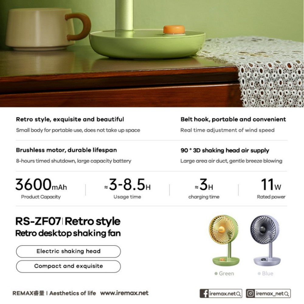Вентилятор Remax RS-ZF07 настільний (з вбуд. акум.) (Гарантія на перевірку 1 міс.)