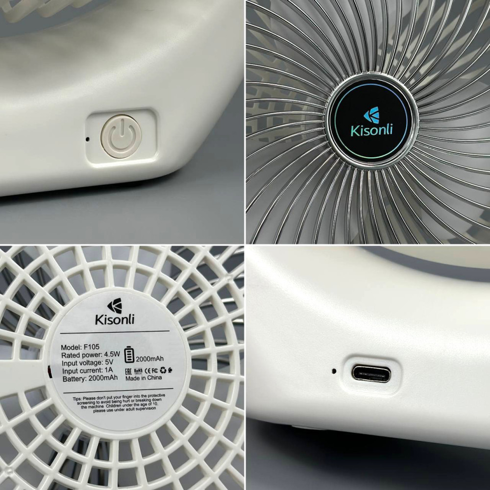 Вентилятор Kisonli F105 настільний 2000mAh (з вбуд. акум.) (21,5см) (Гарантія на перевірку 1 міс.)