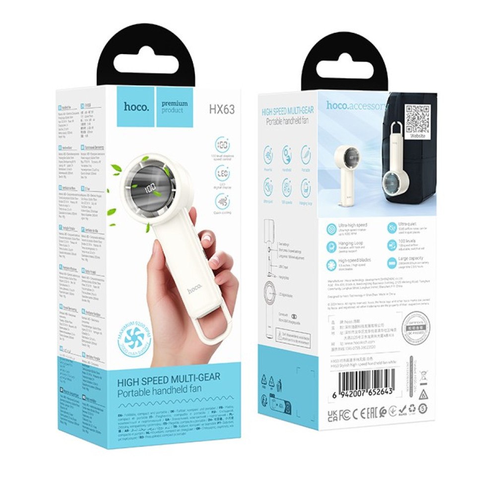 Вентилятор ручний, настільний Hoco HX63 Fashion (з карабіном та дисплеєм, 5 режимів, 2000mAh) (з вбуд. акум.) (Гарантія на перевірку 1 міс.)