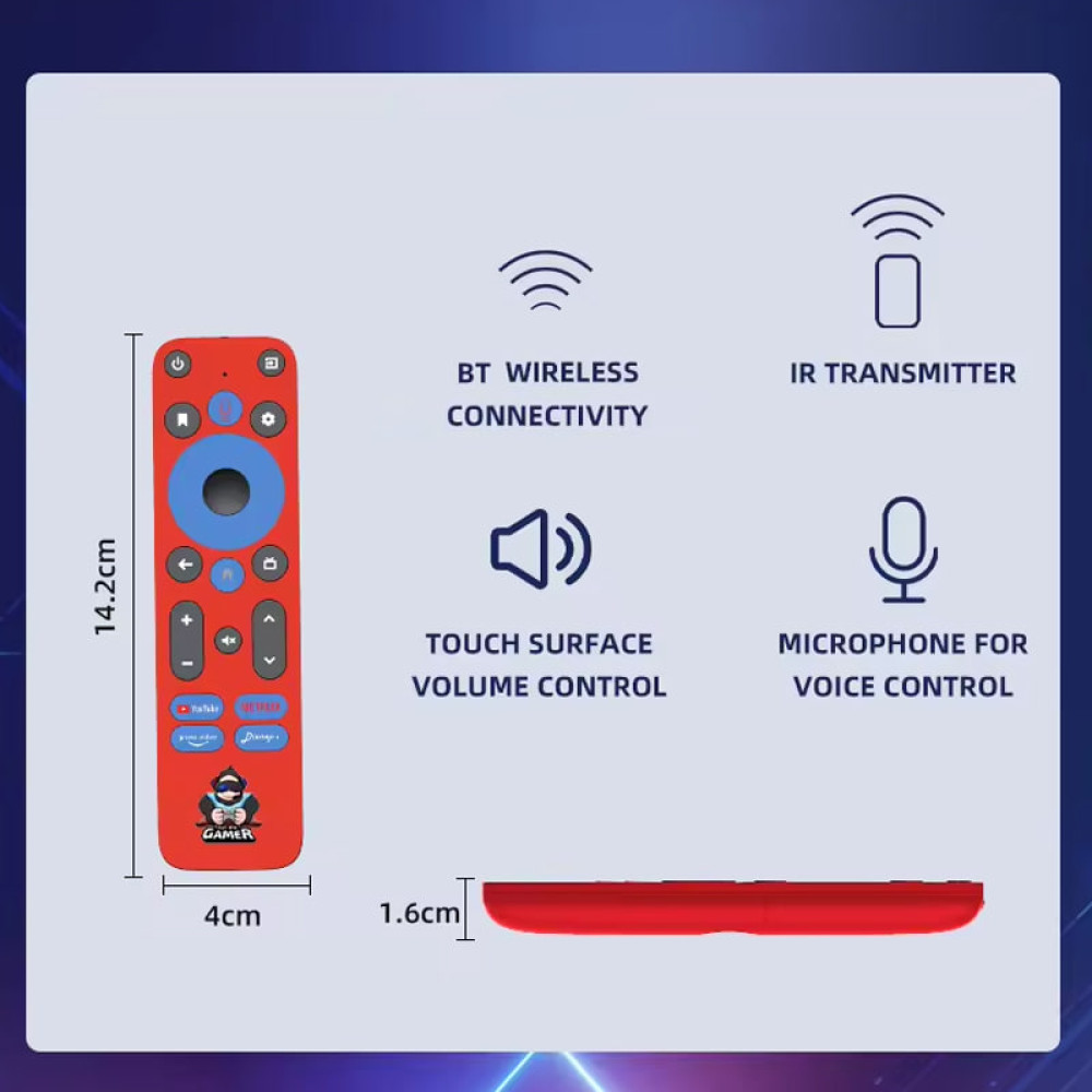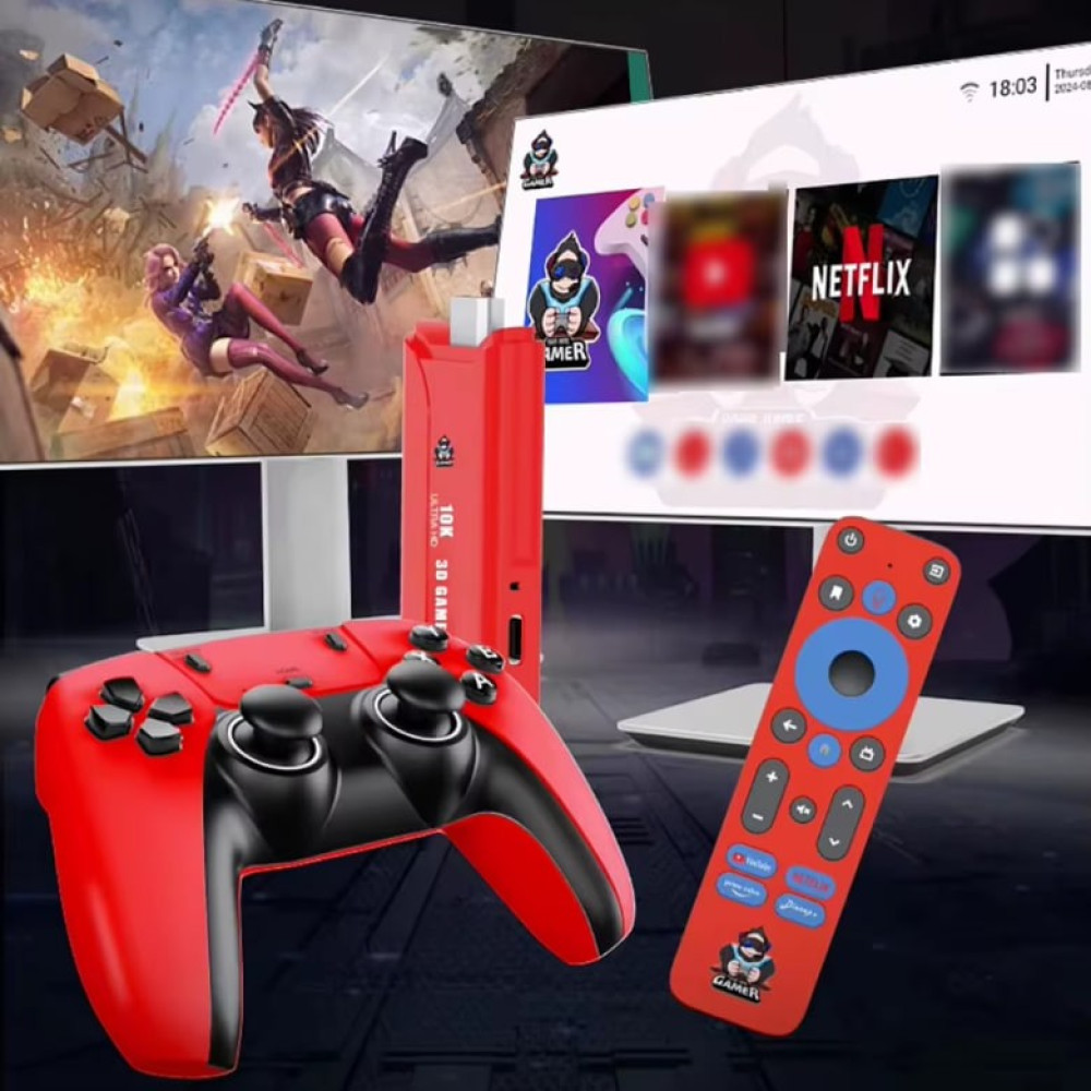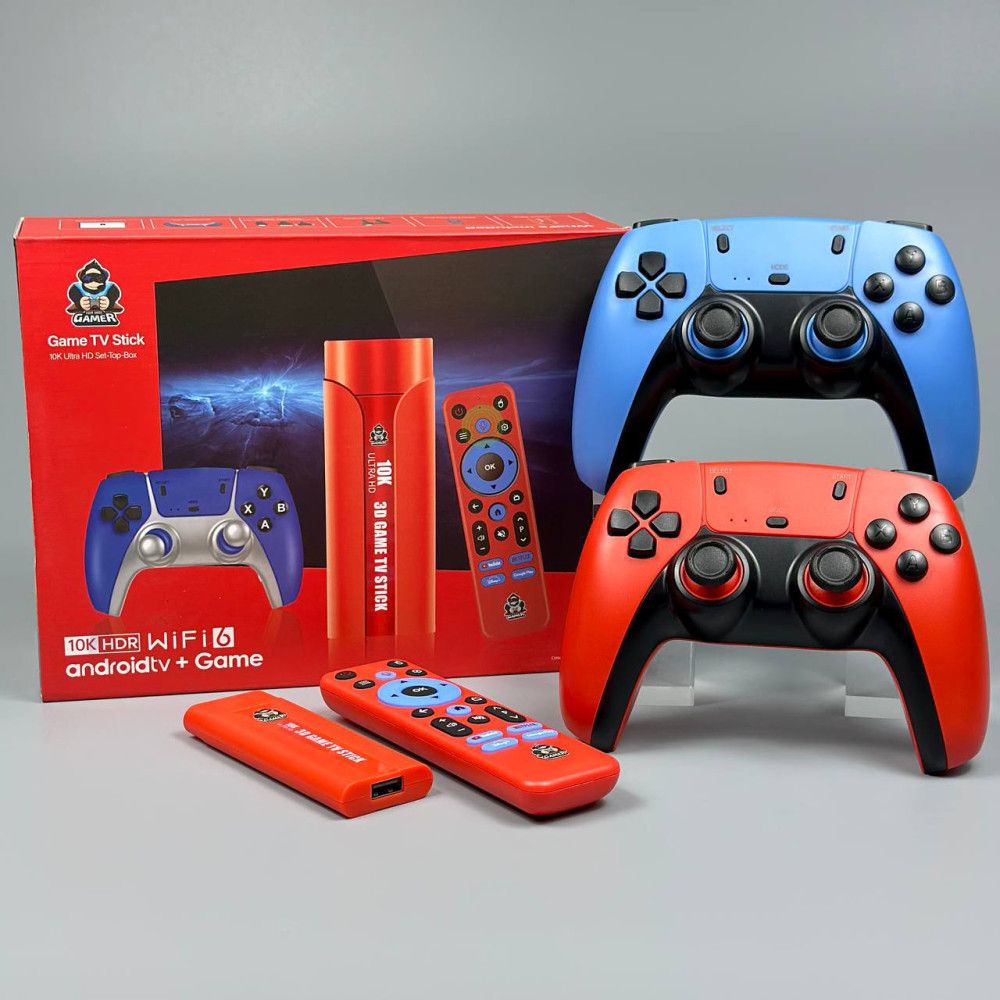 Android TV Stick + 3D Game Box G1 10K HDR WiFi 2.4G+5G+6G+BT5.4, Android 14.0, TF64 (2Gb+16Gb)