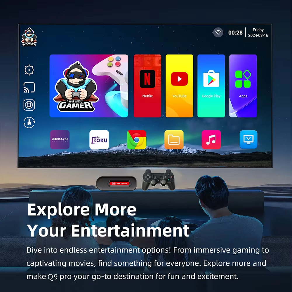 Android TV Stick + 3D Game Box Q9 Pro 8K WiFi 2.4+5G, Android 16.0, TF64 (1Gb+8Gb)