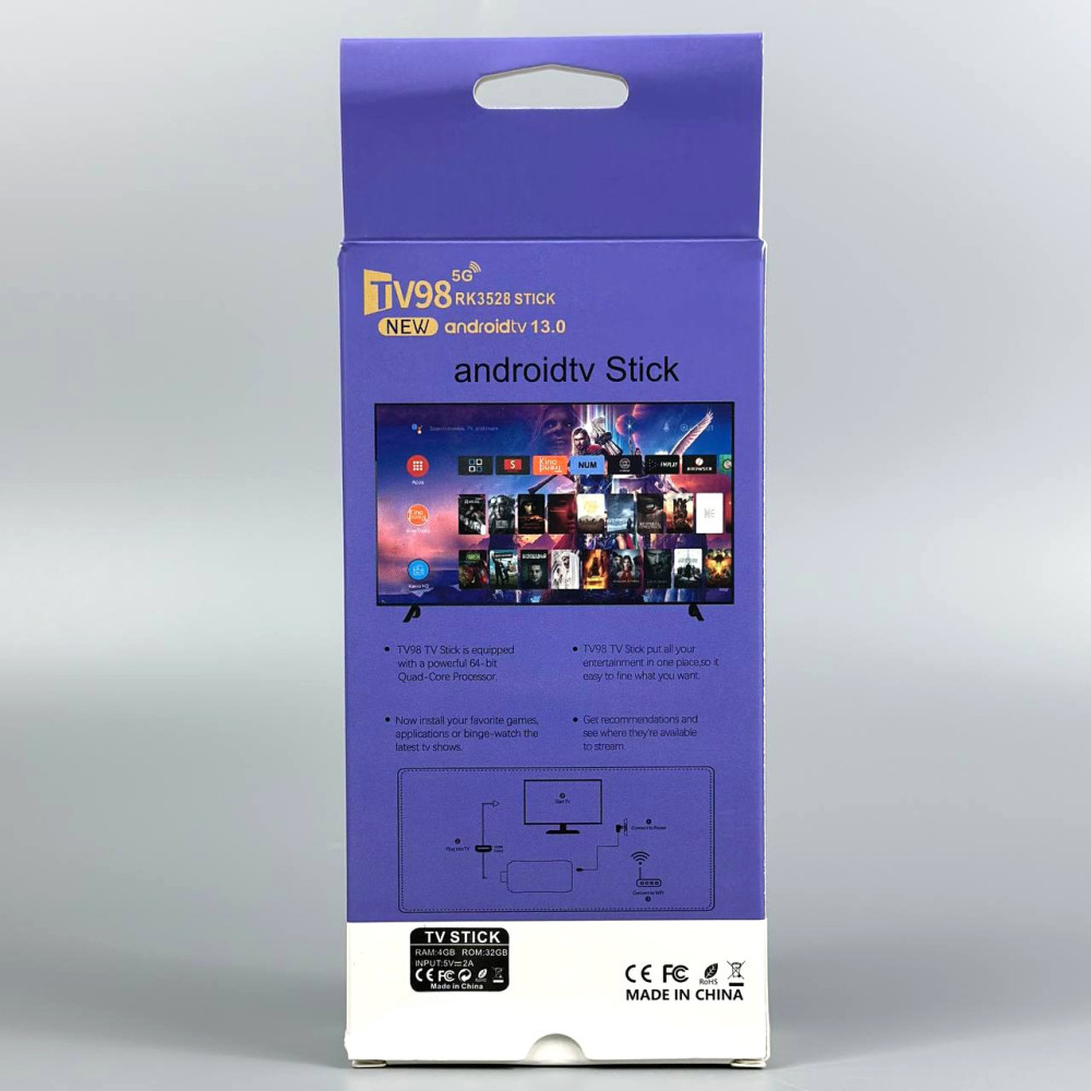 Android TV Stick TV98 RK3528 8K Ultra HD WI-FI 2.4-5G, Android 13.0 (4Gb, 32Gb)