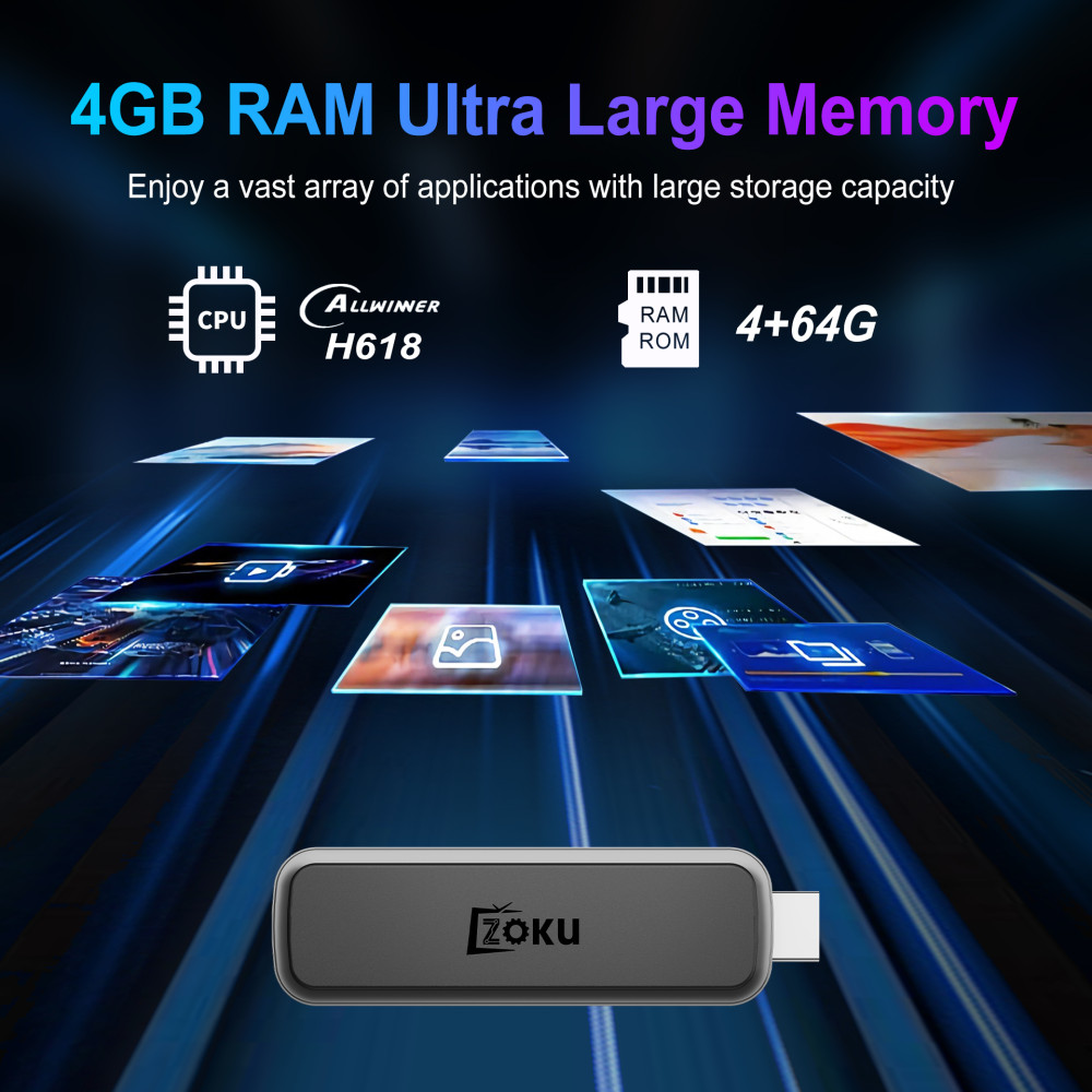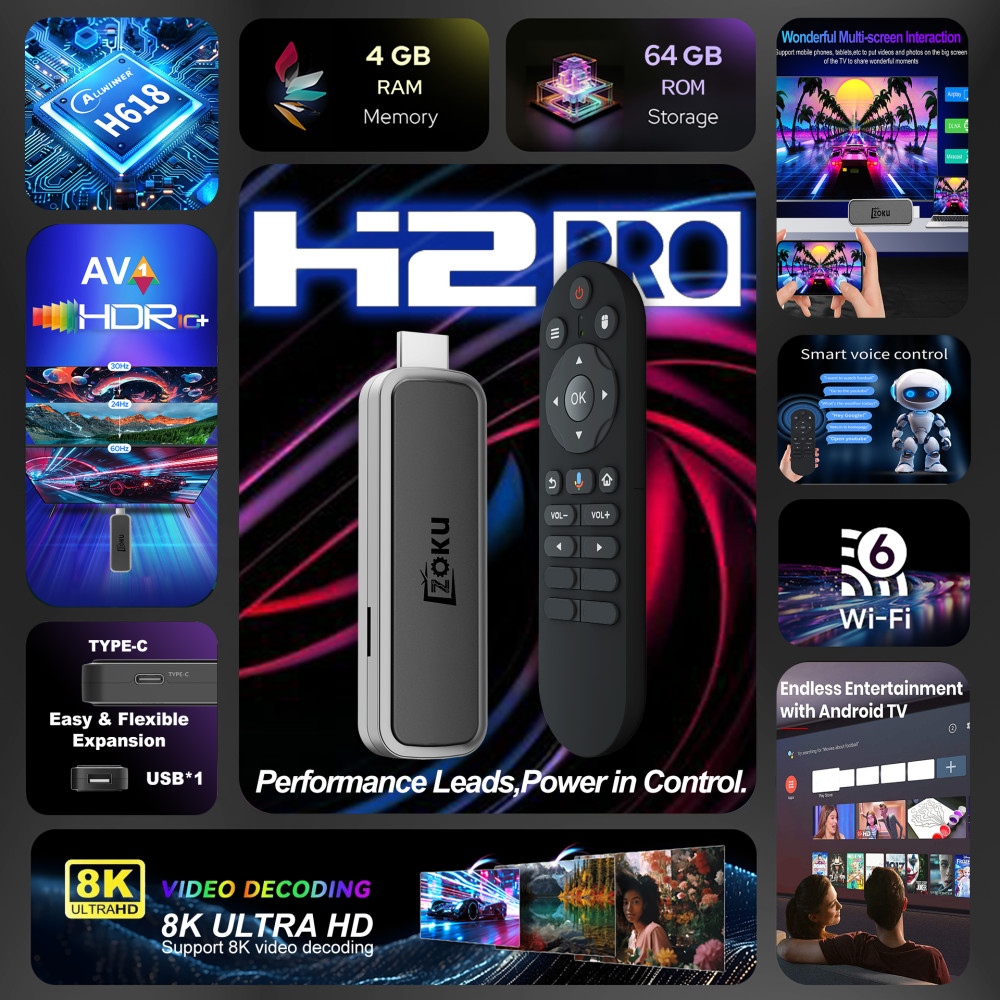 Android TV Stick Zoku H2 Pro Express 4K+ H618 WiFi 6G+BT5.4, Android 12.0 (4Gb+64Gb)