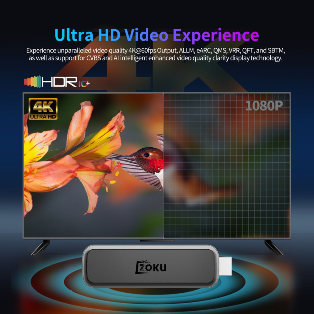 Android TV Stick Zoku H2 Pro Plus 8K WiFi 6G+BT5.4, Android 14.0 (4Gb+64Gb)