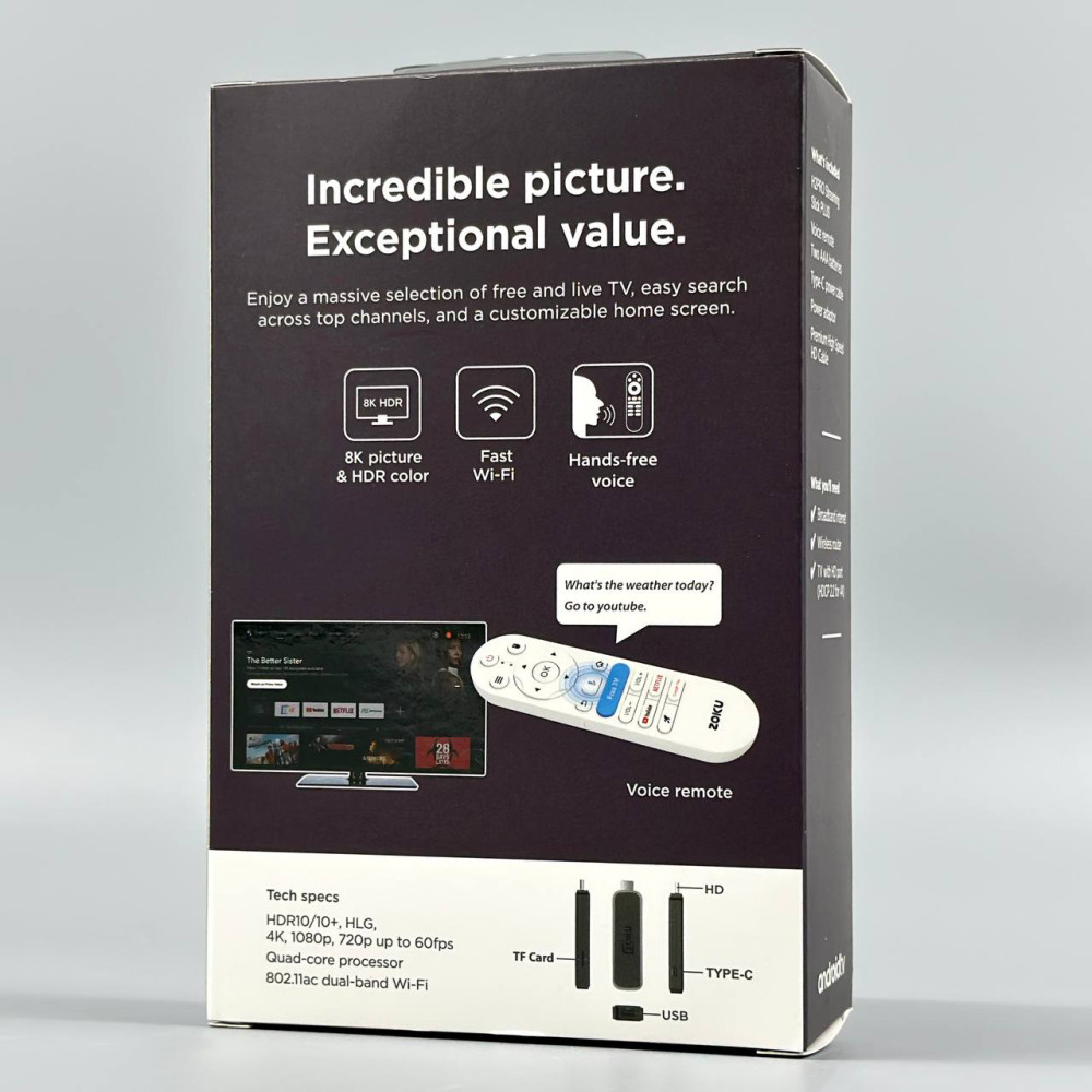 - Пульт дистанційного керування - пульт дистанційного керування Bluetooth з можливістю вибору мови та Wi-Fi 6