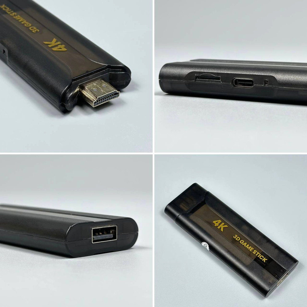 - Комплектація: Стік, 2 геймпади, карта 64Gb, кабель живлення, HDMI-подовжувач.