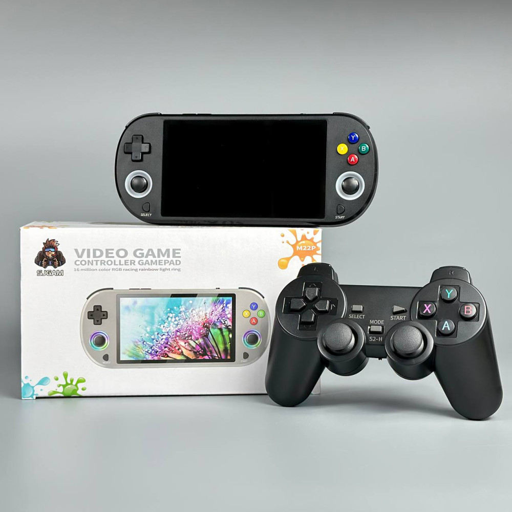 SJGAM M22 Pro - це портативна ігрова консоль, що працює на базі Linux, яка підтримує безліч емуляторів, включаючи PS1, NDS, GBA, GBC, MD, DC, FC, SFC, MAME, а також має встановлені 15000 ретро-ігор. Консоль оснащена 5-дюймовим IPS екраном з роздільною здатністю 1920x1080, 64ГБ вбудованої пам'яті та підтримує microSD карти. Вона також має USB Type-C, mini HDMI, mini jack 3.5 мм та microSD роз'єми.
