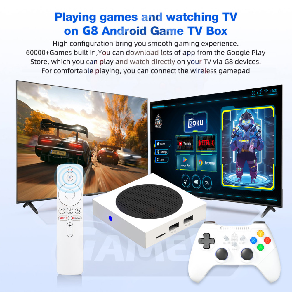 Smart TV приставка + 3D Game Box G8 4K Amlogic 905Y2 WiFi 2.4+5G+BT5.4, Android 14.0, TF128 (2Gb+16Gb)