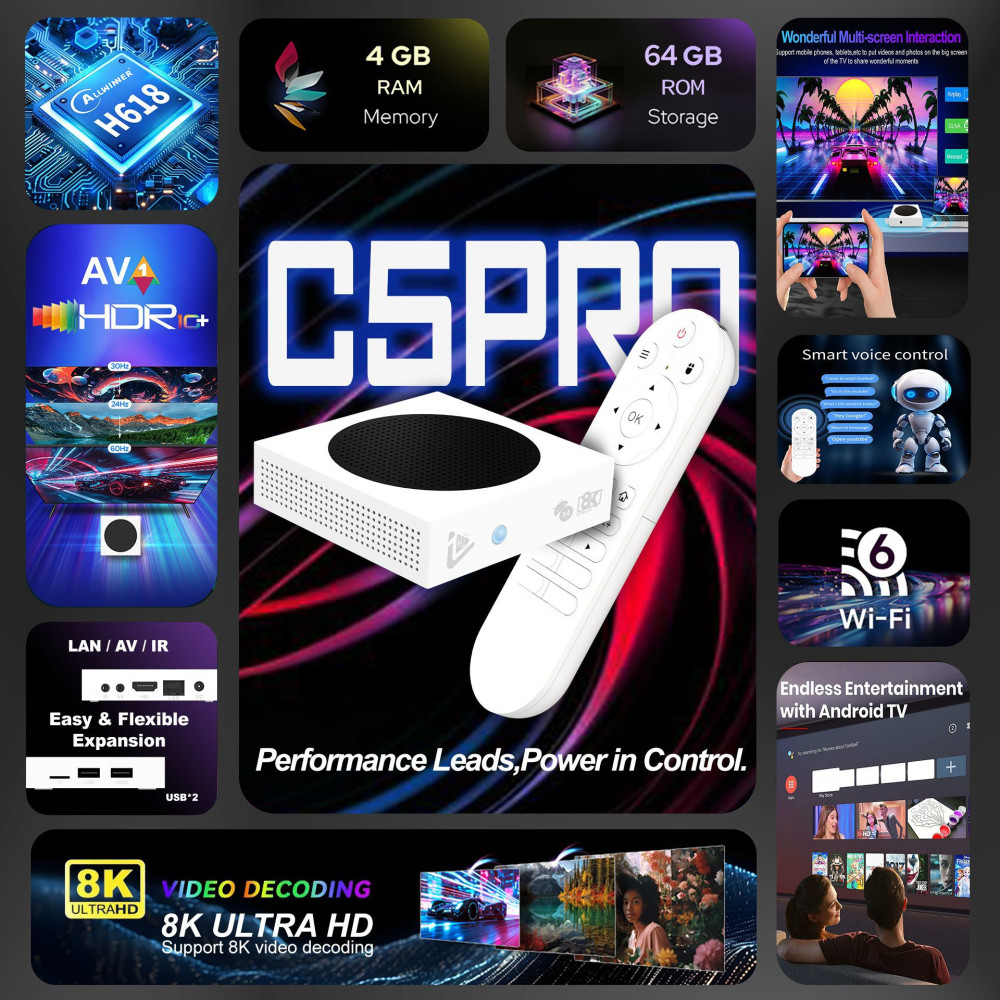 Smart TV приставка Zoku C5 Pro 8K Ultra H618 WI-FI 5G+BT5.4, Android 14.0 (4Gb+64Gb)
