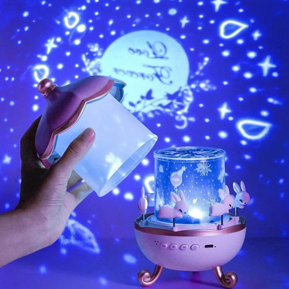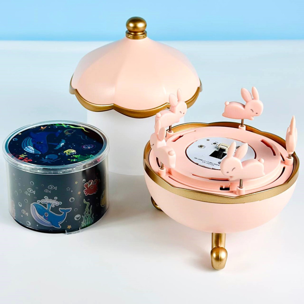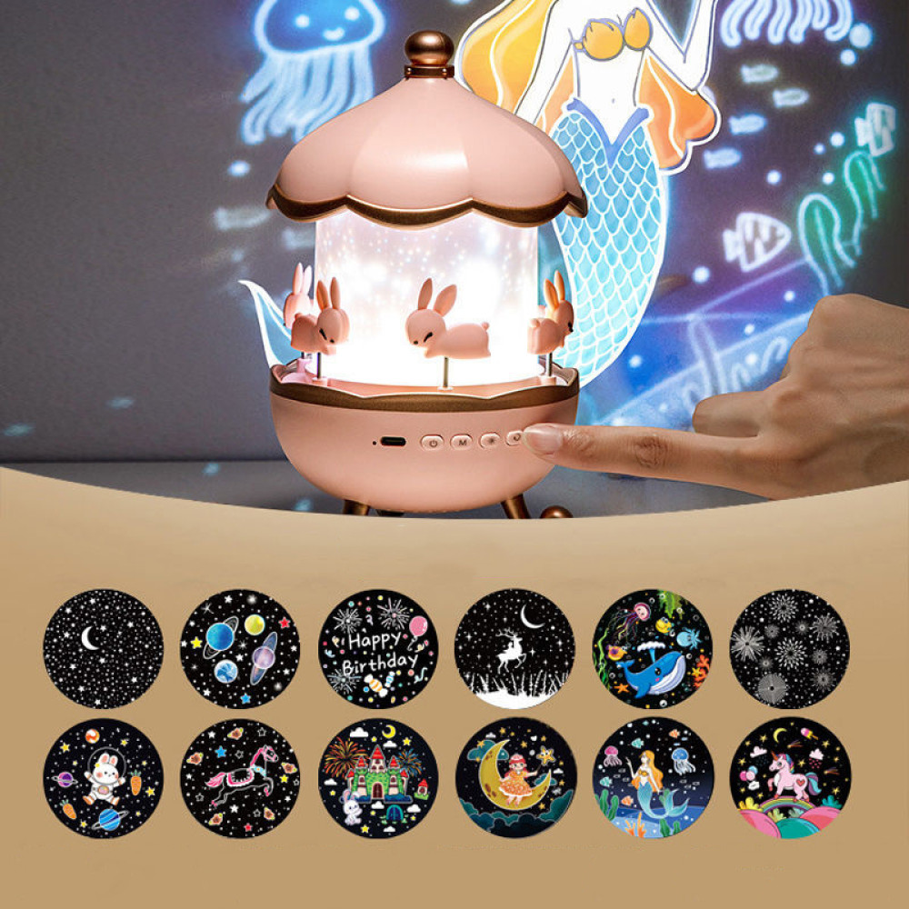 Нічник-проектор Карусель Зіркове Небо (музичний, зі змінними слайдами, від акумулятора) (Гарантія на перевірку 3 міс.)