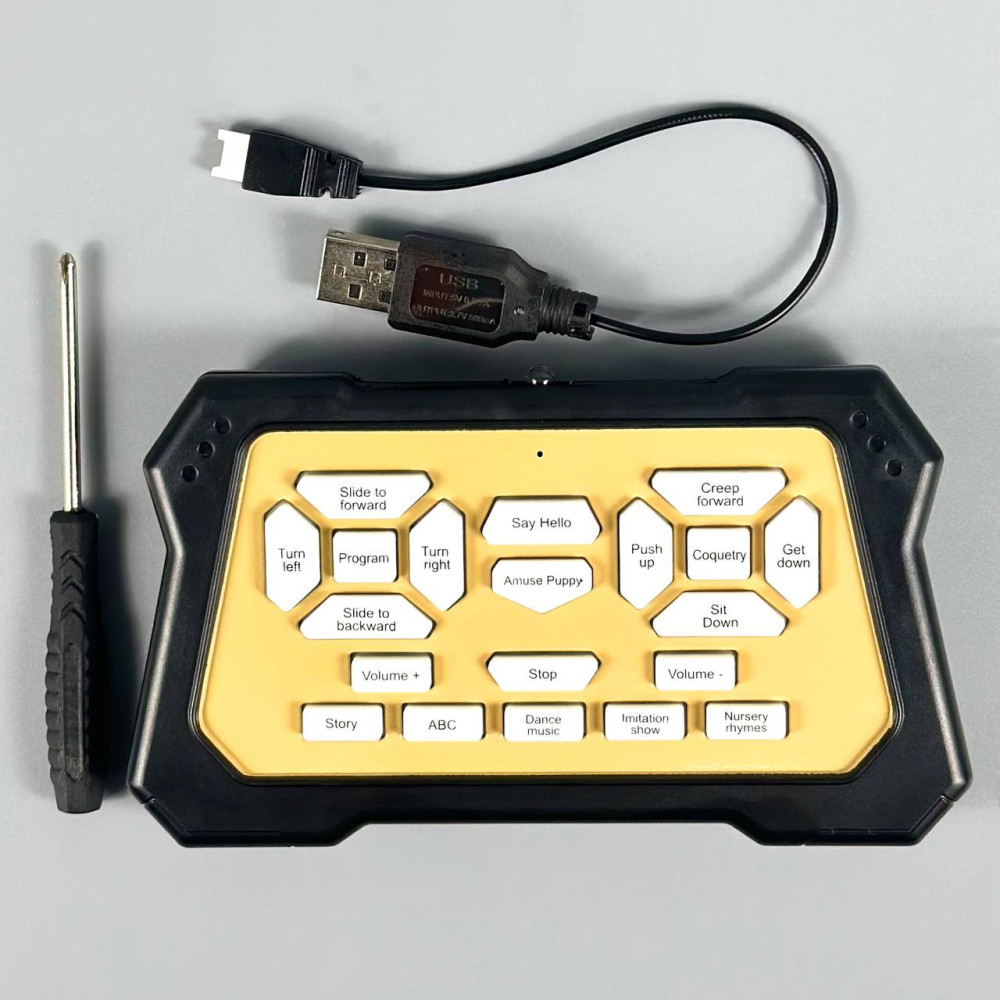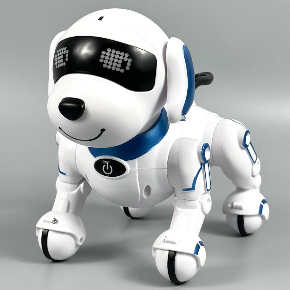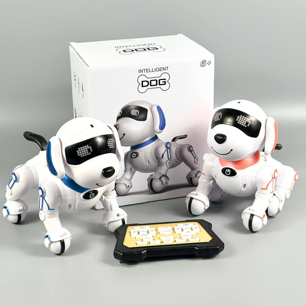 1. Інтерактивний розумний робот-собака, який розповідає історії, співає дитячі пісеньки, танцює, навчає базовій англійській мові та імітує шість звуків тварин, поєднуючи навчання з грою, щоб діти були зацікавлені та розважені.