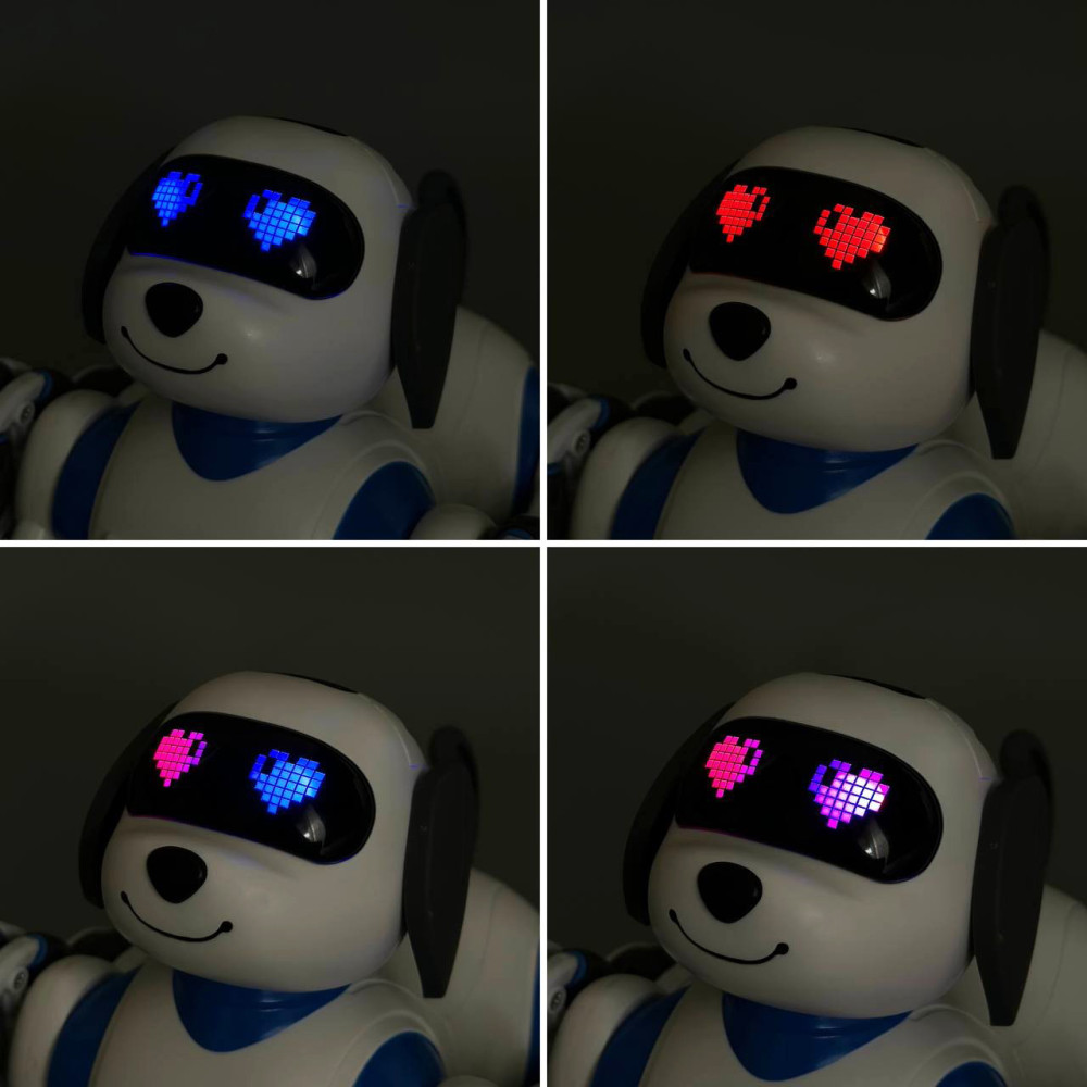 - Функції: перевороти передніми ногами, перемикання пісень, обертання, режим танцю, уповільнене обертання, голосовий режим, регулювання гучності, вітання, режим сенсорного керування.