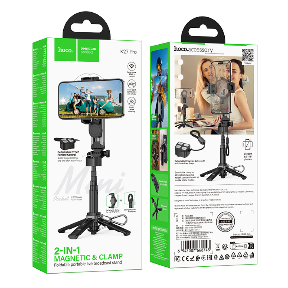Монопод (трипод) Hoco K27 Pro Magic Mini Selfie Stick (для селфі та фотозйомки) 0.48m