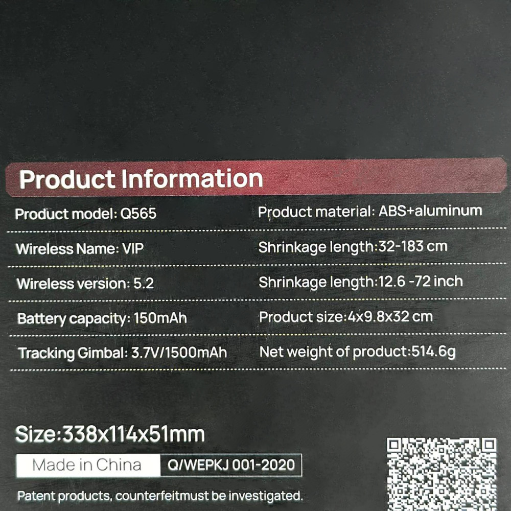 Монопод-стабілізатор Q565 з AI-відстеженням на штативі Bluetooth 1.80m (360° Rotating Pan Tilt)