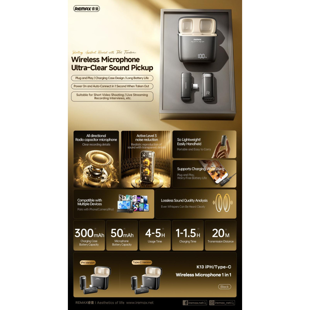 Бездротовий петличний мікрофон Remax K13 Radio One-to-One Lightning