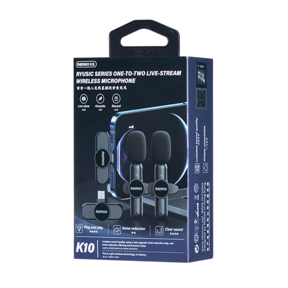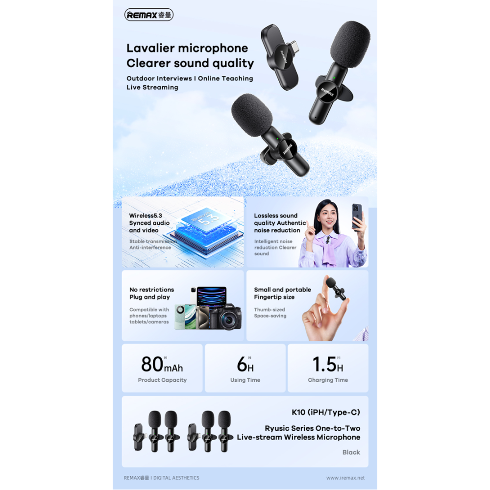 Бездротовий подвійний мікрофон петличний Remax K10 Ryusic Series One-to-Two Lightning
