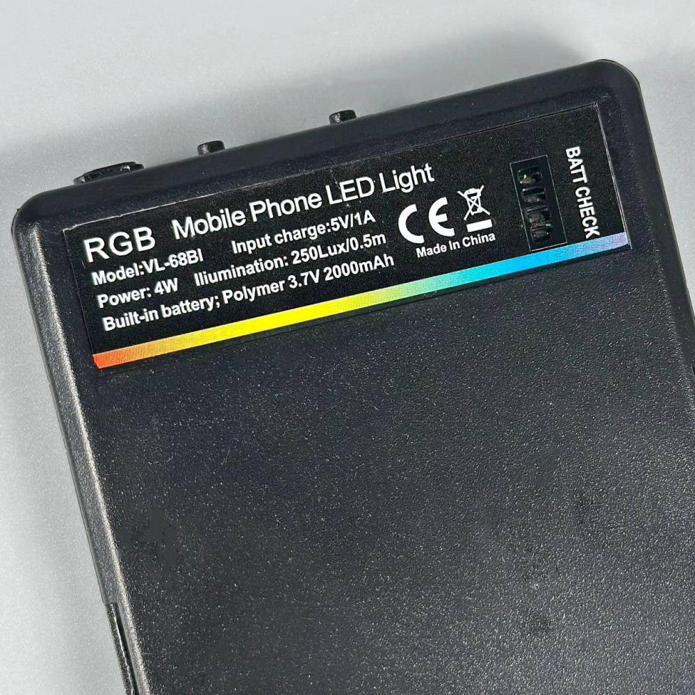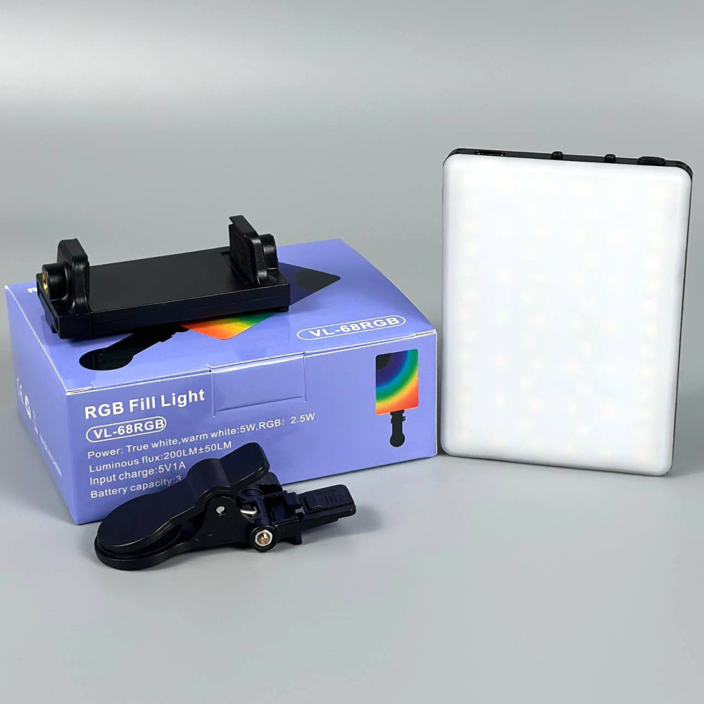Портативне відеосвітло VL-68 RGB+Warm White Light (з 2-ма видами кріплення) 2000mAh 3000-7000K (11*8см)