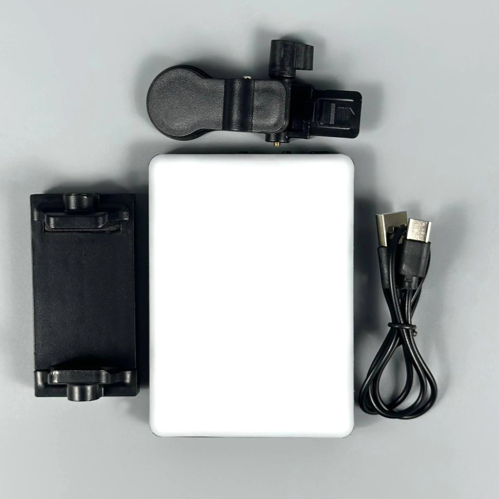 - Кріплення для штативу, затискач-прищіпка та тримач для телефону