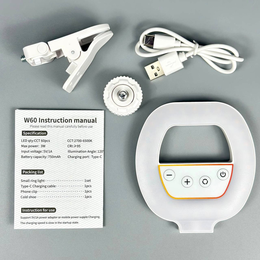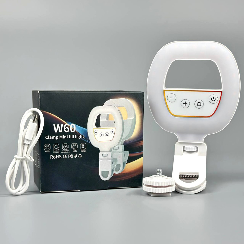 Портативне відеосвітло W60 з кліпсою для фіксації, триколірний режім 750mAh (2700-6500K)