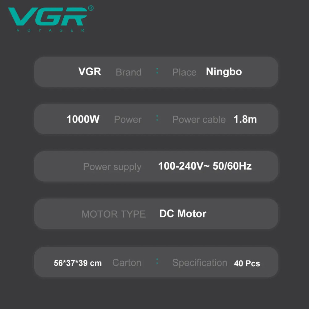 Фен дорожній VGR V-432 (3 рівні обдування 1200Вт) (Гарантія на перевірку 3 міс.)