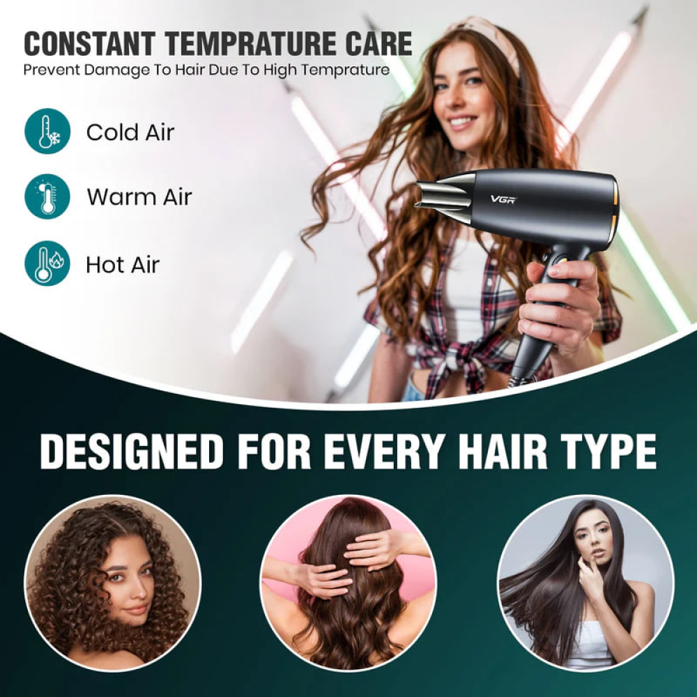 Фен VGR V-439 дорожній зі складною ручкою 1200-1600 Вт (Гарантія на перевірку 3 міс.)