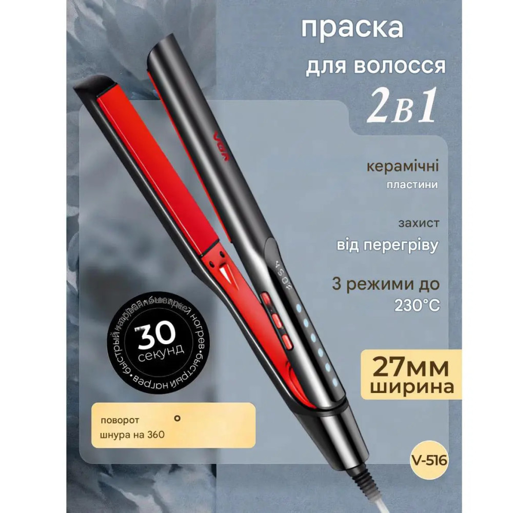 Вирівнювач для волосся VGR V-516 (230°C, керамічне покриття, LED дисплей) (Гарантія на перевірку 3 міс.)