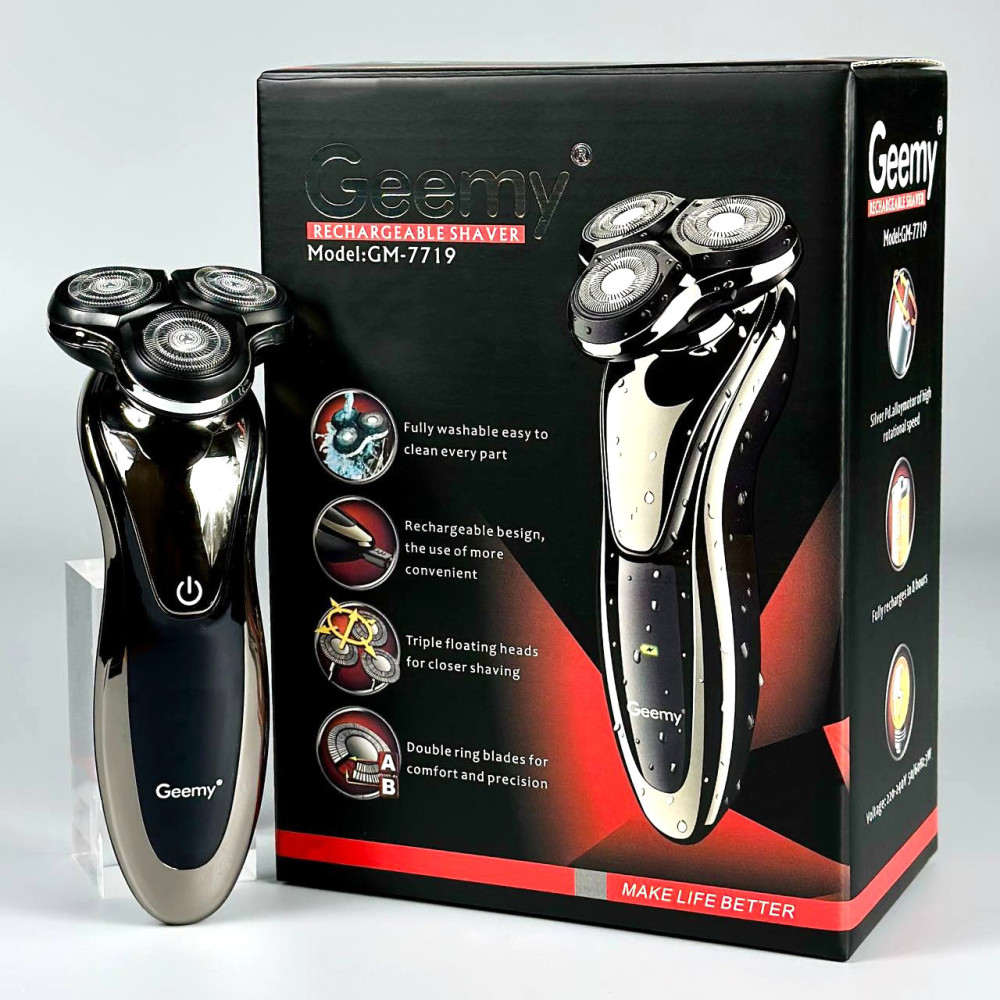 Електробритва Geemy GM-7719 з 3 лезами та плаваючими головками (водонепроникна) (Гарантія на перевірку 3 міс.)