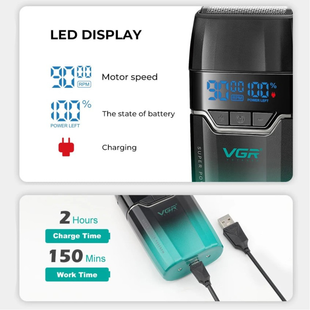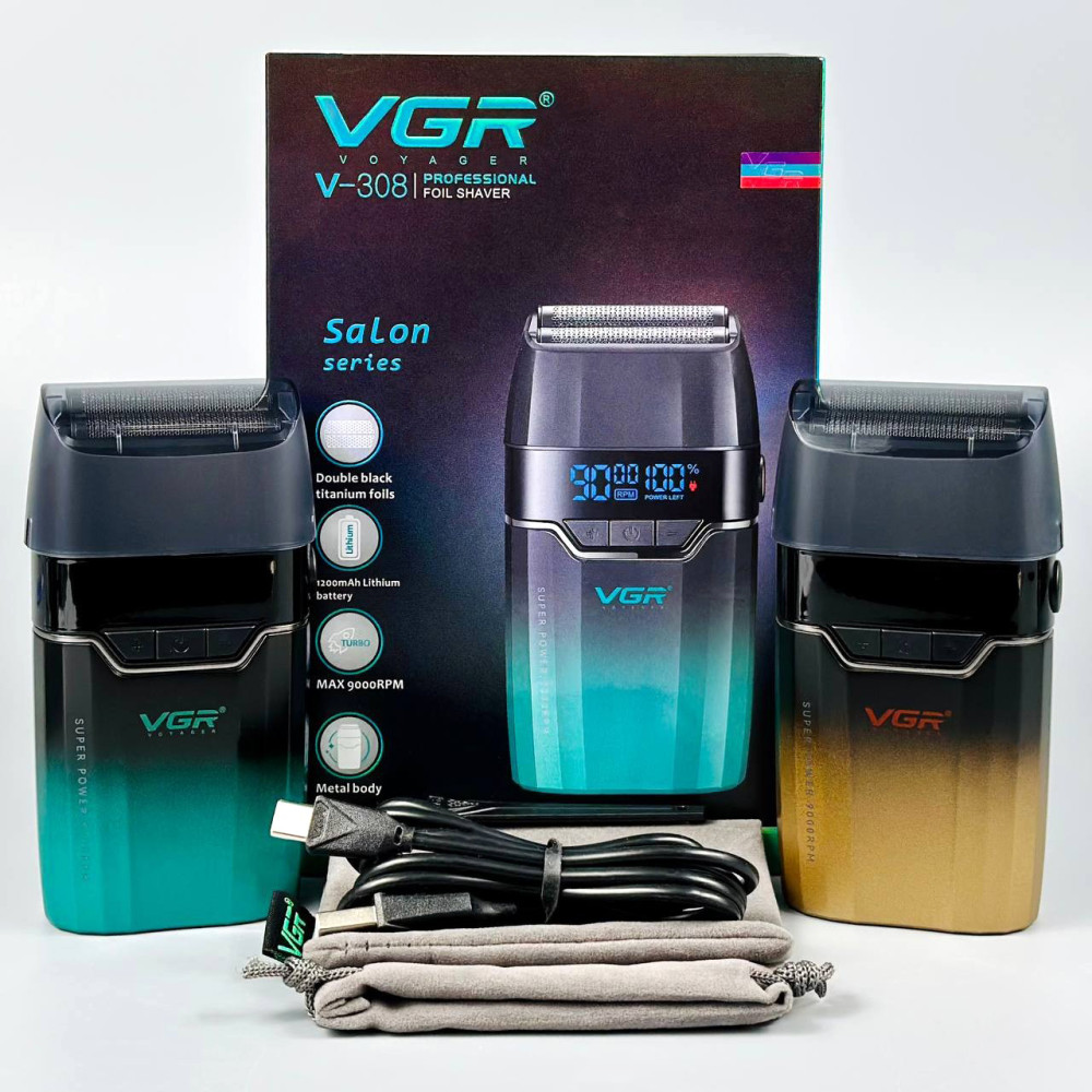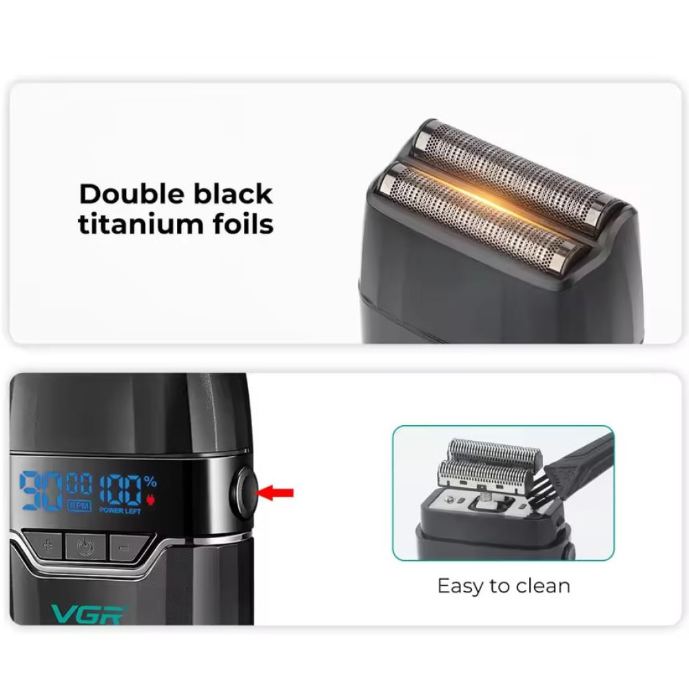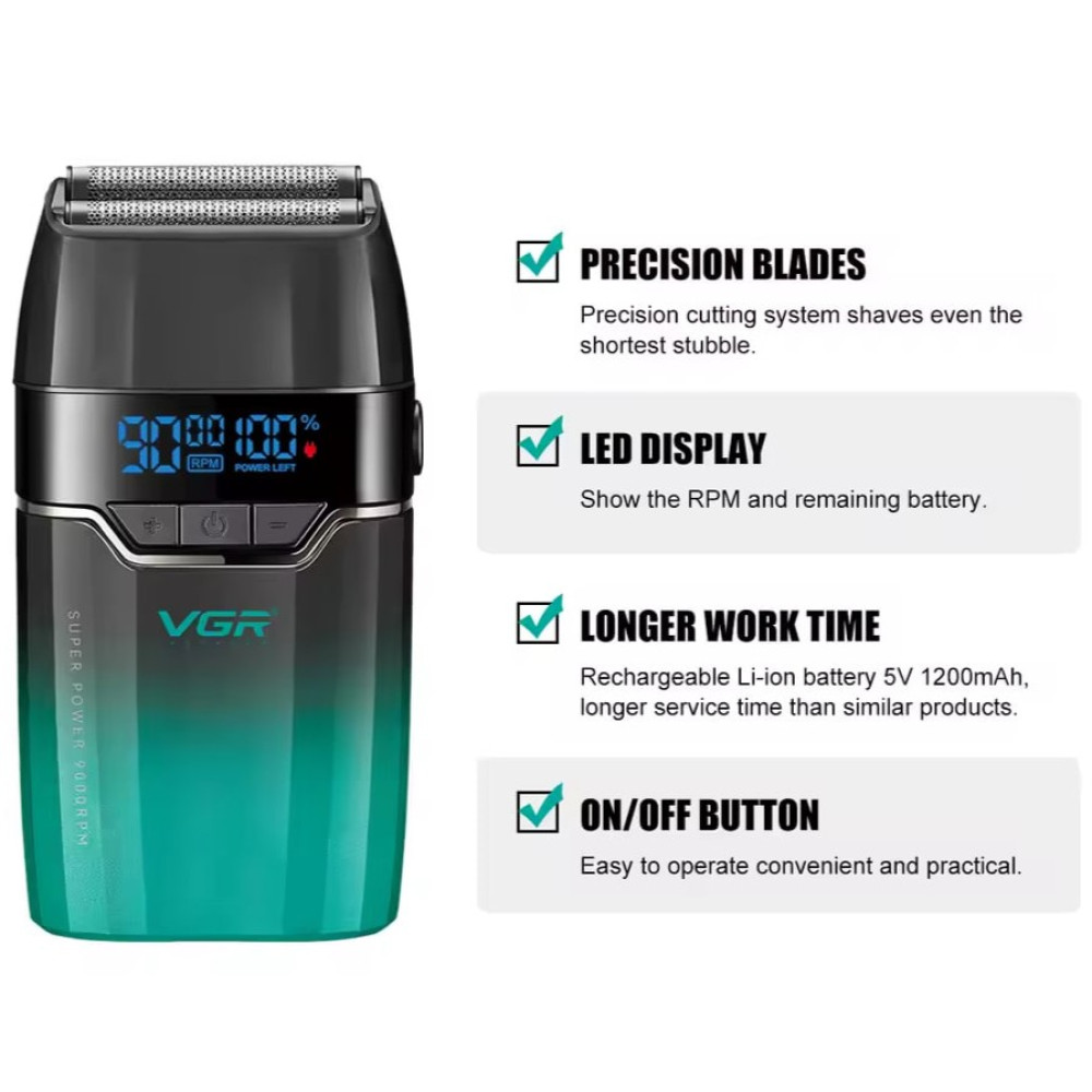 Електробритва VGR V-308 (шейвер, подвійне лезо, 9000RPM, LED дисплей) (Гарантія на перевірку 3 міс.)