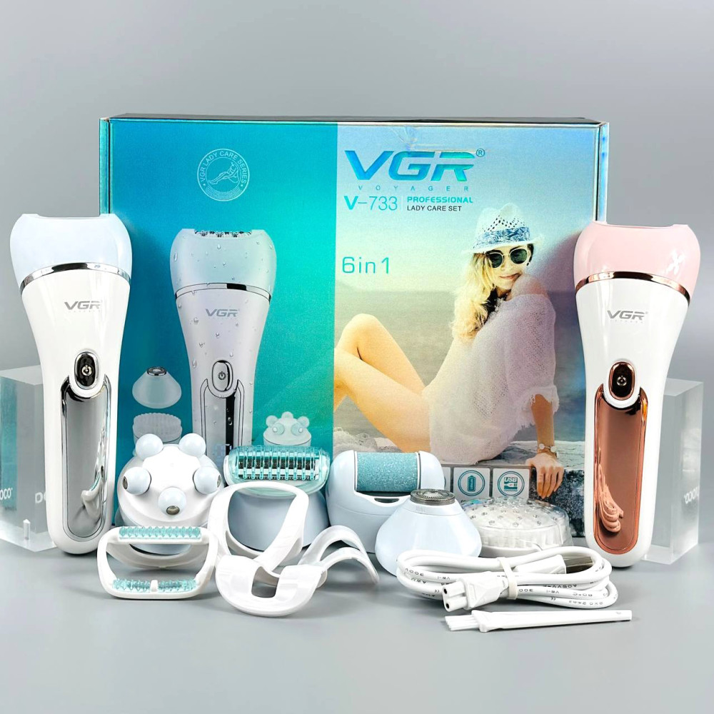 Епілятор VGR V-733 6в1 (12 насадок, IPX7, LED дисплей) (Гарантія на перевірку 1 міс)