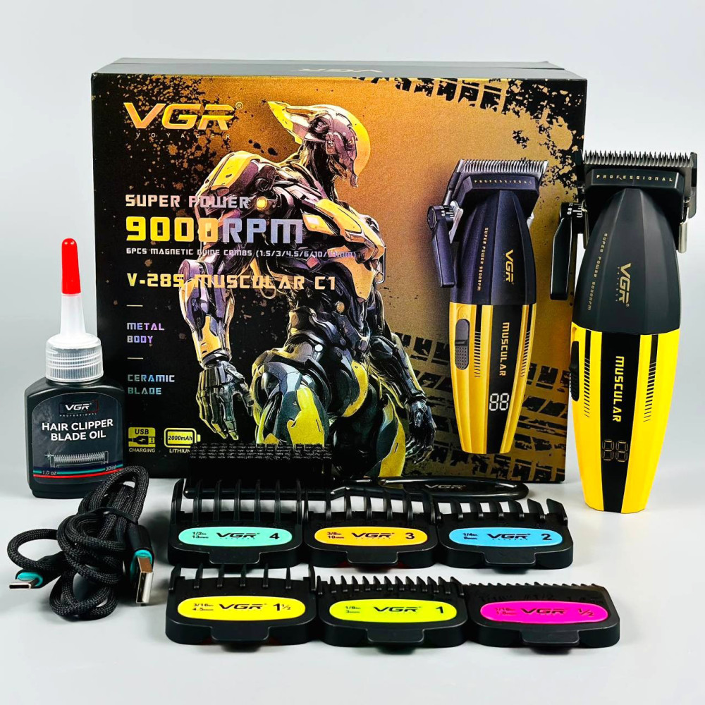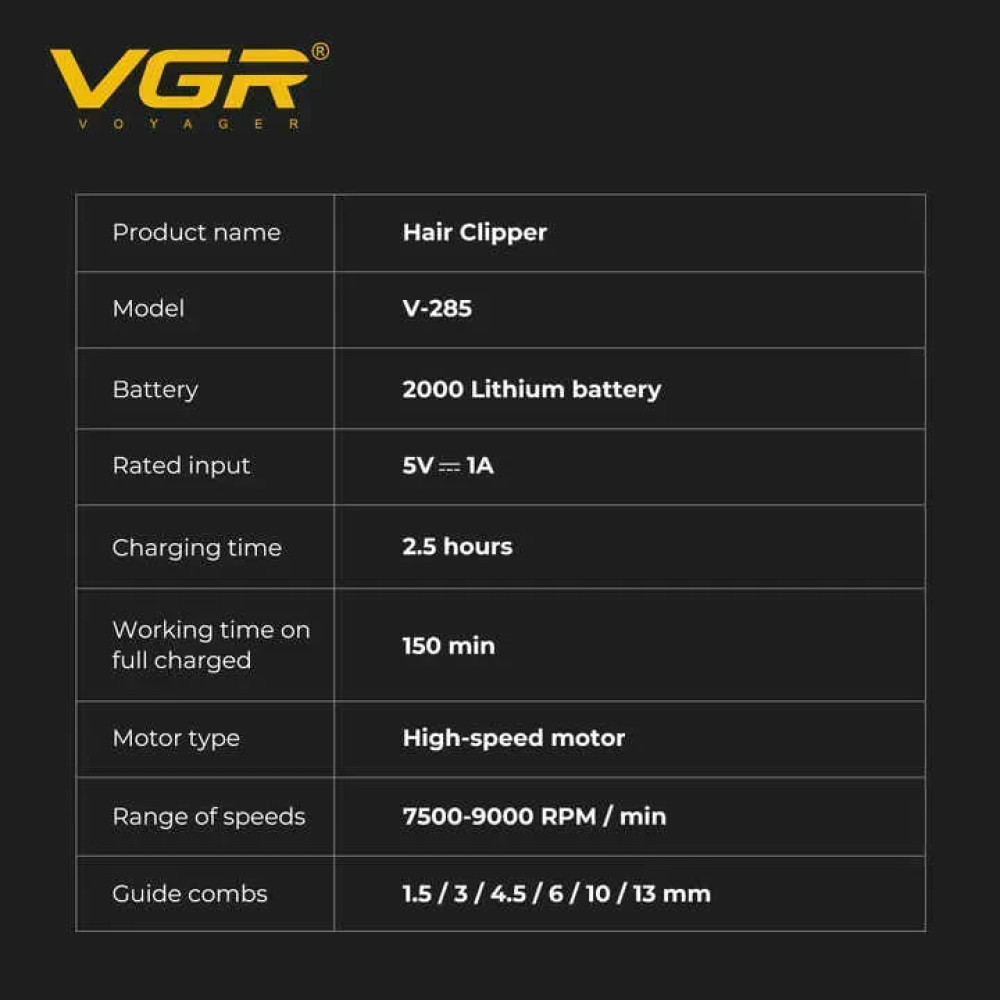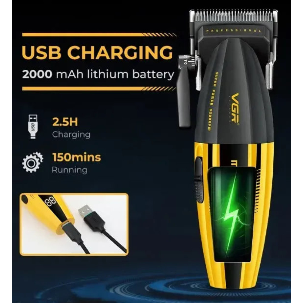 Машинка для стрижки VGR V-285 (6 насадок, 9000 RPM, 2000 mAh, LED display) (Гарантія на перевірку 3 міс.)