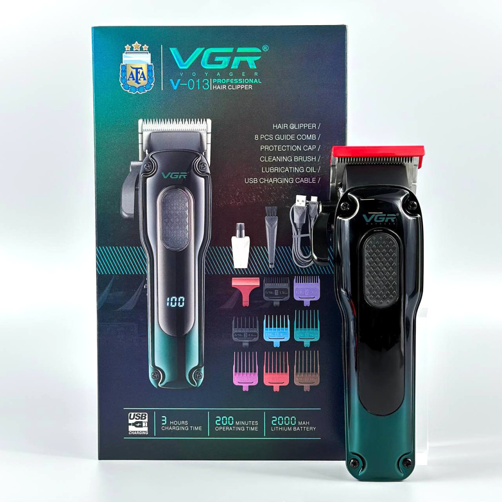 Машинка для стрижки акумуляторна VGR V-013 (8 насадок, 6500 RPM, 2000 mAh, LED display) (Гарантія на перевірку 3 міс.)